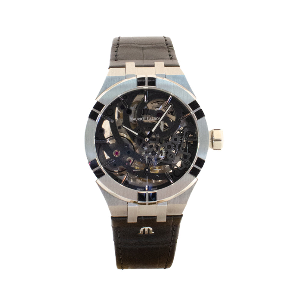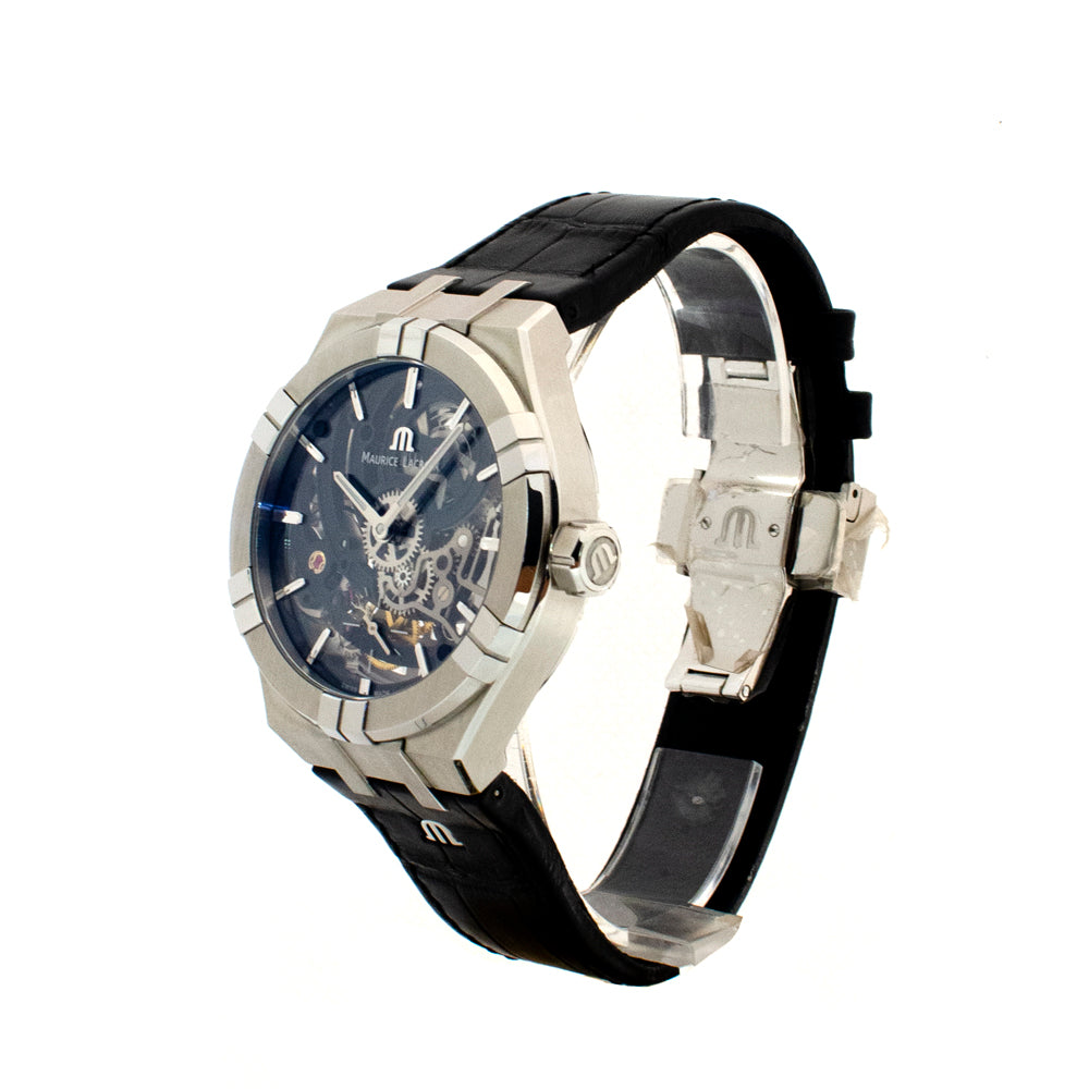 45mm stainless steel case, skeleton watch, scratch-resistant sapphire crystal with anti-reflective treatment,black crocodile leather bracelet and stainless steel butterfly buckle, ml234 automatic mechanical movement with a power reserve of 52 hours, functions: hours, minutes and seconds at 6 o'clock, water resistant to 100 meters.