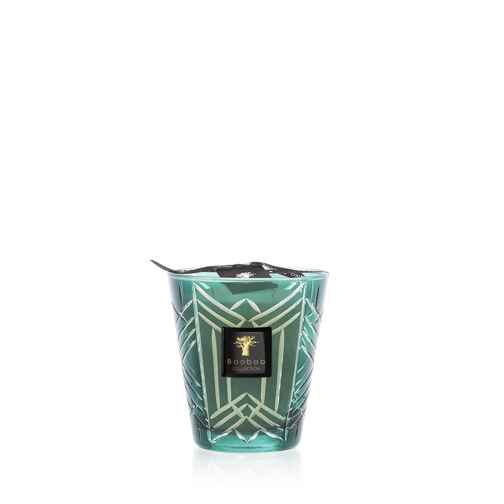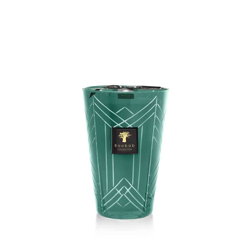 The Gatsby scented candle is set in a hand-blown glass that is hand-engraved by our artisans with an art deco geometric design. With glass covered in green, the engraving remains transparent, giving it a precious and magical appearance when the flame’s light is reflected upon its surface. Its incense and amber perfume reference the mysterious character of Fitzgerald’s novel, seen as wildly seductive and simultaneously impalpable in black smoking on festive evenings in Long Island.