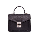 This classic satchel crafted of our signature Visetos coated canvas is a refined accessory that adds elegance to any outfit. Featuring a front flap closure with a laurel engraved push lock fastening and a roomy interior with two gusseted compartments, an interior side zip pocket and silver hardware throughout for maximum refinement.