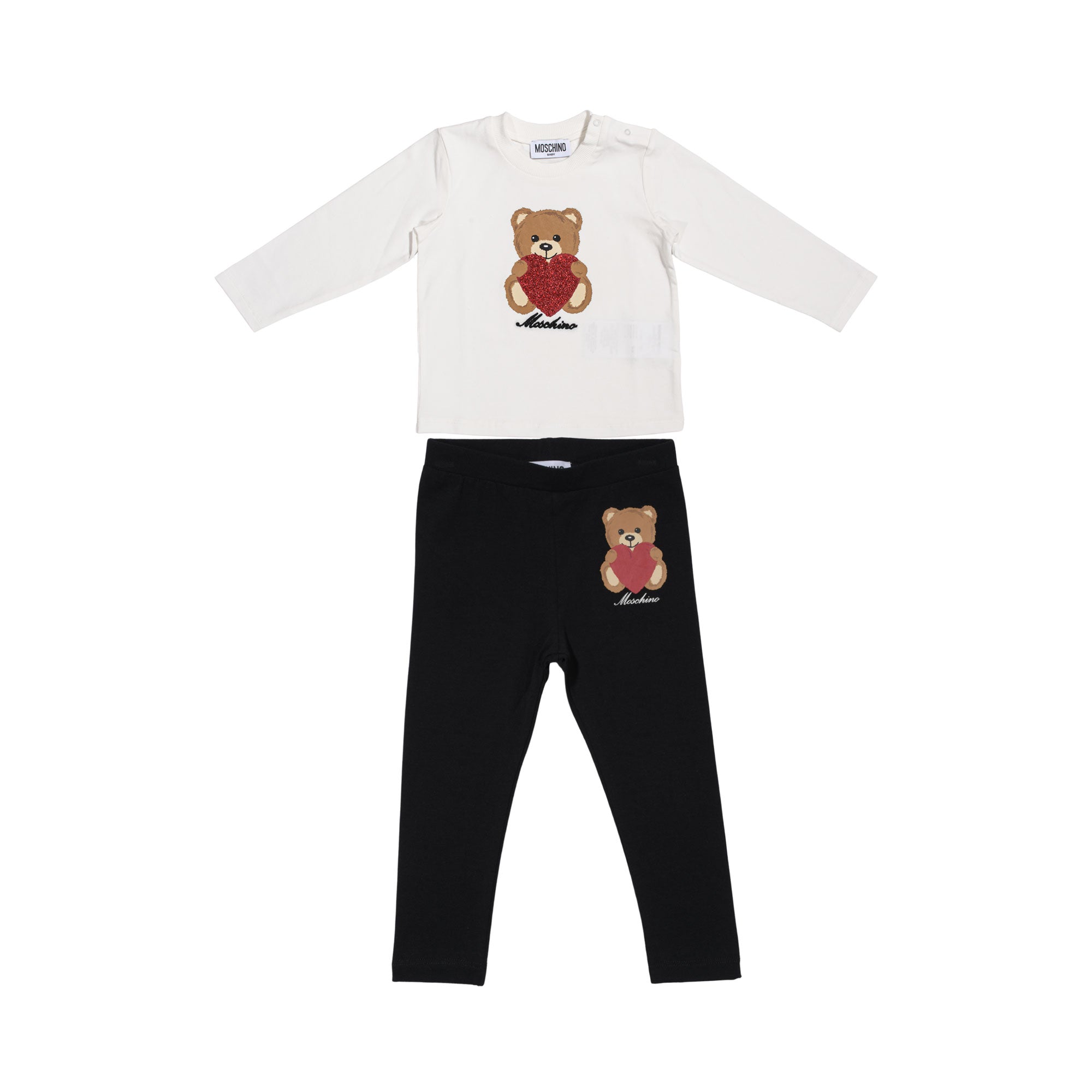 Moschino Kids White & Black Tracksuit for Baby Girl with Teddy Bear and Logo