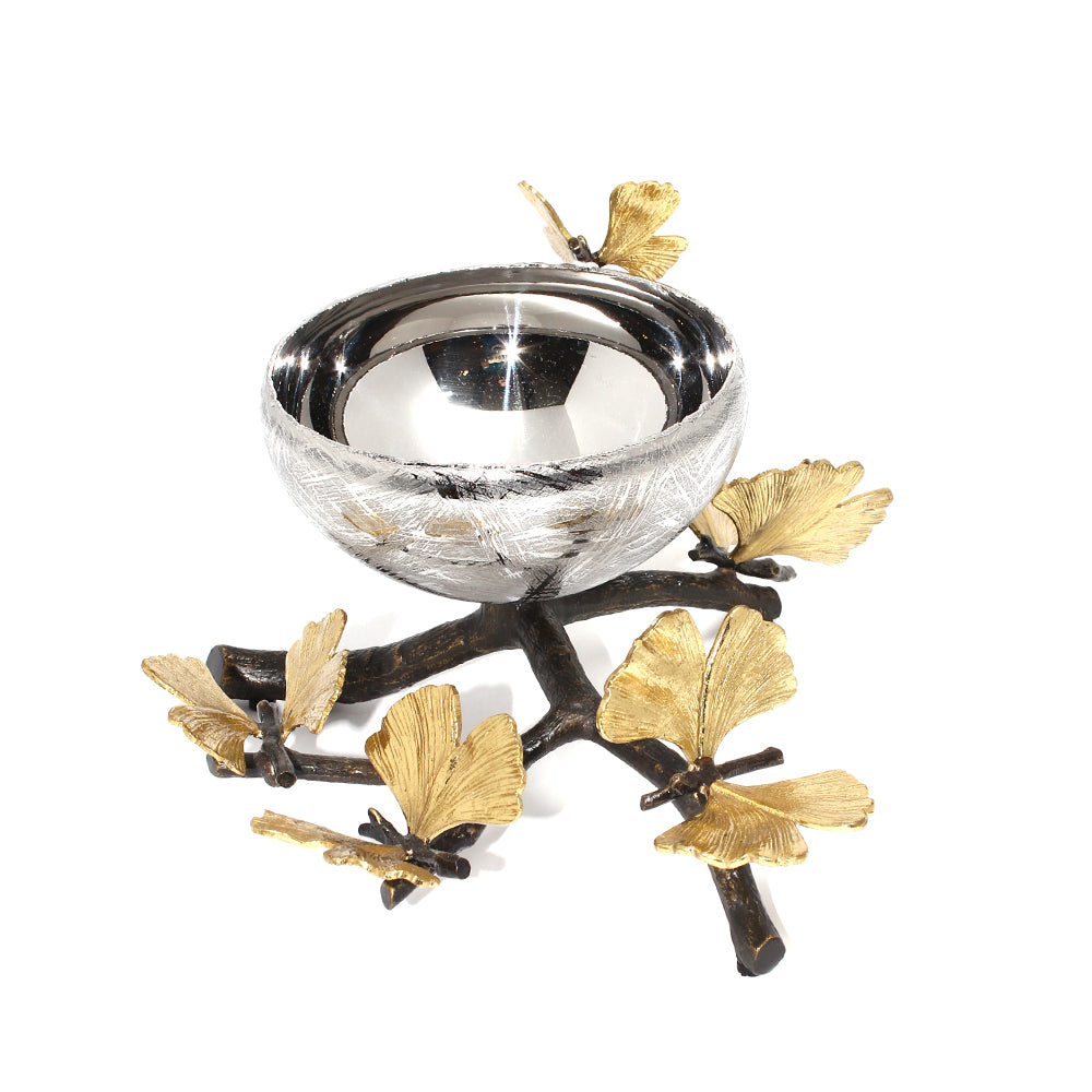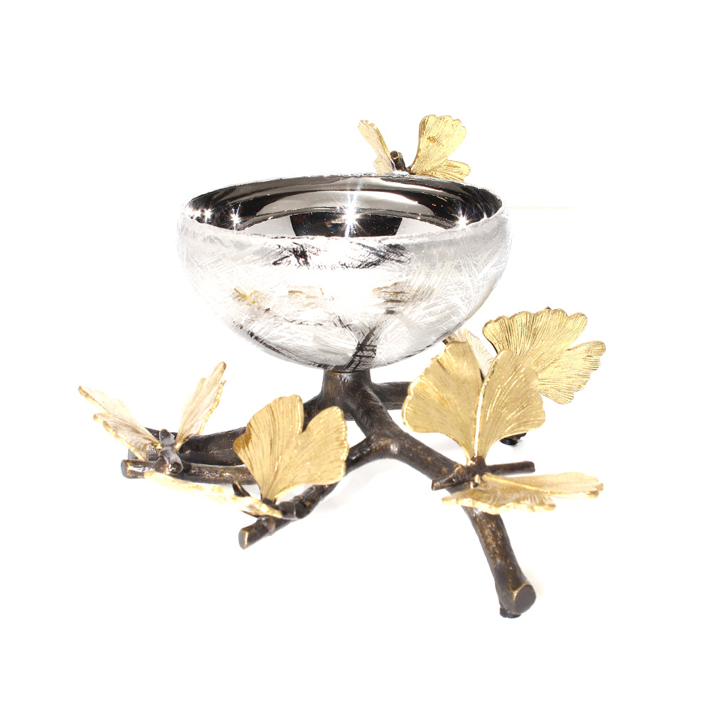 The Butterfly Ginkgo Collection celebrates the representation of flora as fauna. Michael's fascination with a particular type of ginkgo tree , the Ginkgo Biloba, or "Butterfly Ginkgo", which grows with a double leaf reminiscent of a butterfly's wings, gave rise to a fantasia image of the plant. Executed at the highest level of handcraftsmanship, each piece is rendered in solid brass with hand etched cocoon-shaped vessels. The pieces in the collection are a tour de force of the handcrafted process, capturing the poetic spirit that is so deeply indicative of Michael's work.