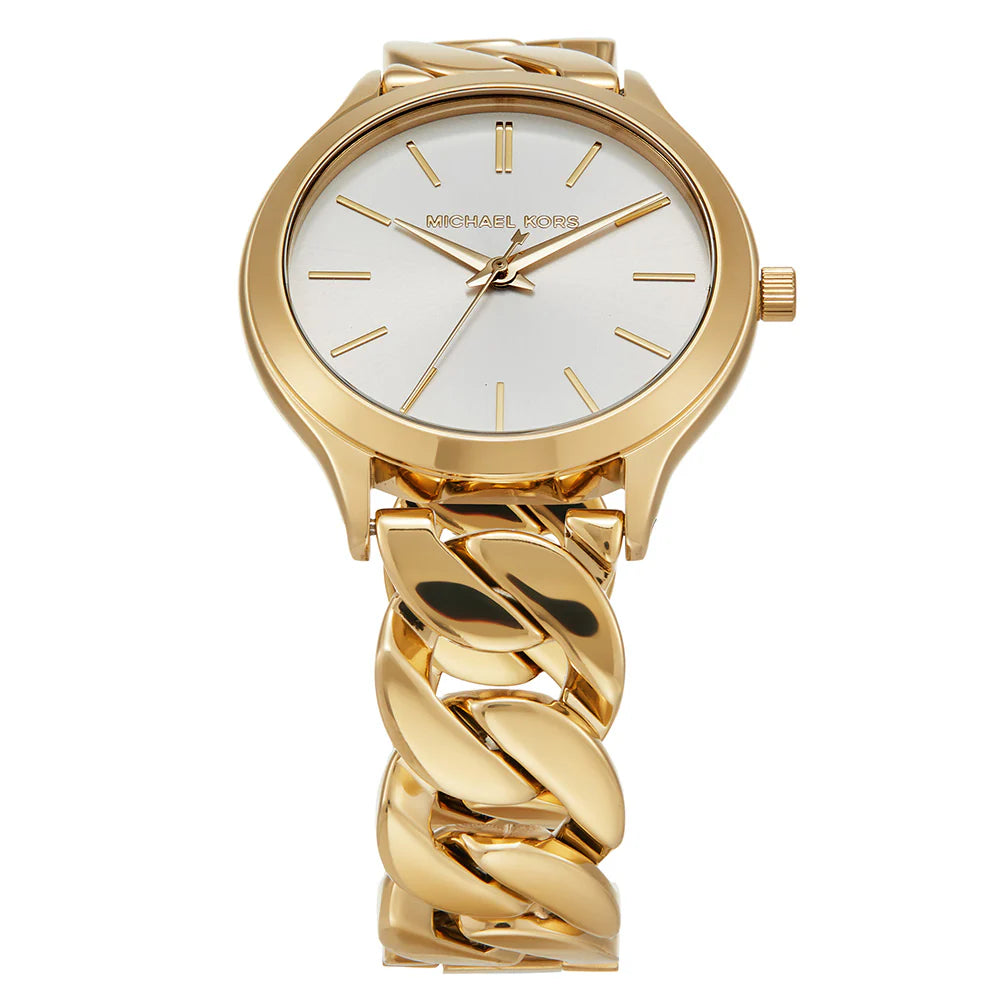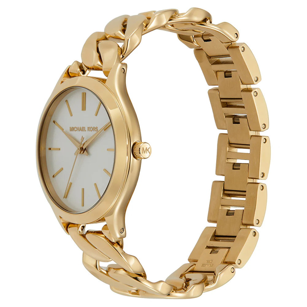 Michael Kors Slim Runway Ladies Silver Dial Gold Tone Watch