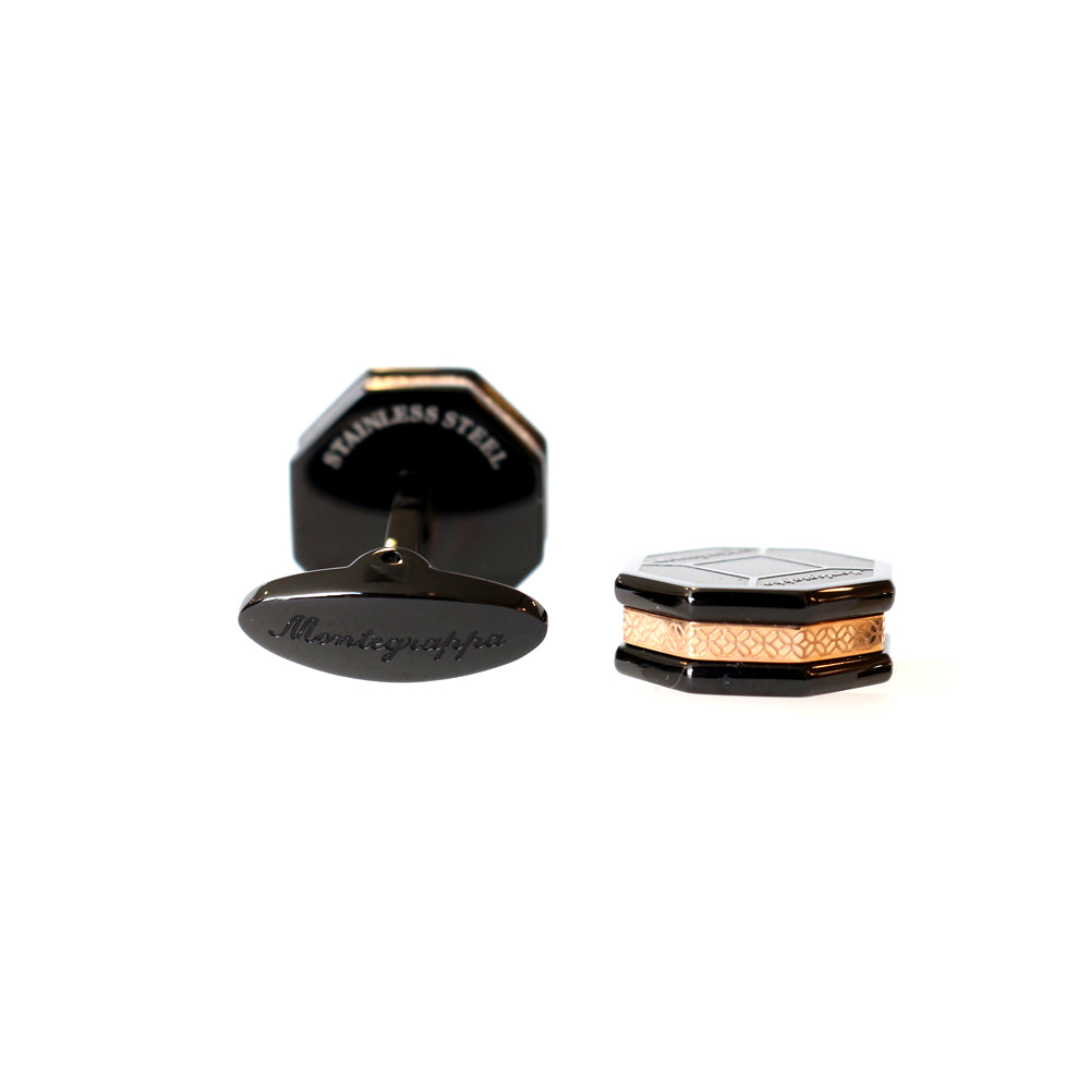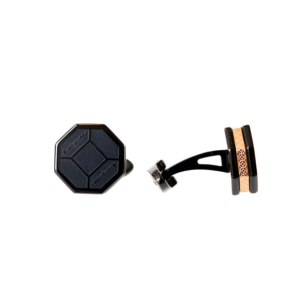 Tripudio cufflink octagon shape with ip black & ip rosegold lining on the side