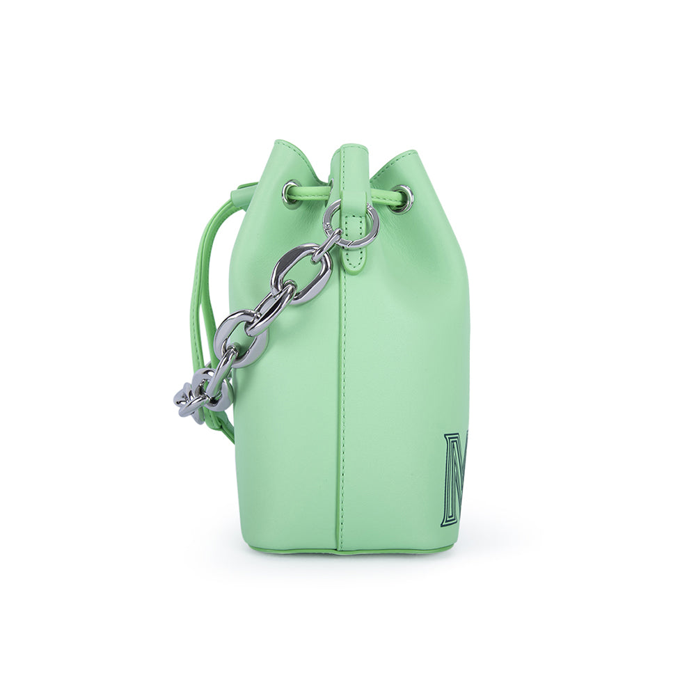 MCM Chain Leather Drawstring Bag Summer Green Mini
