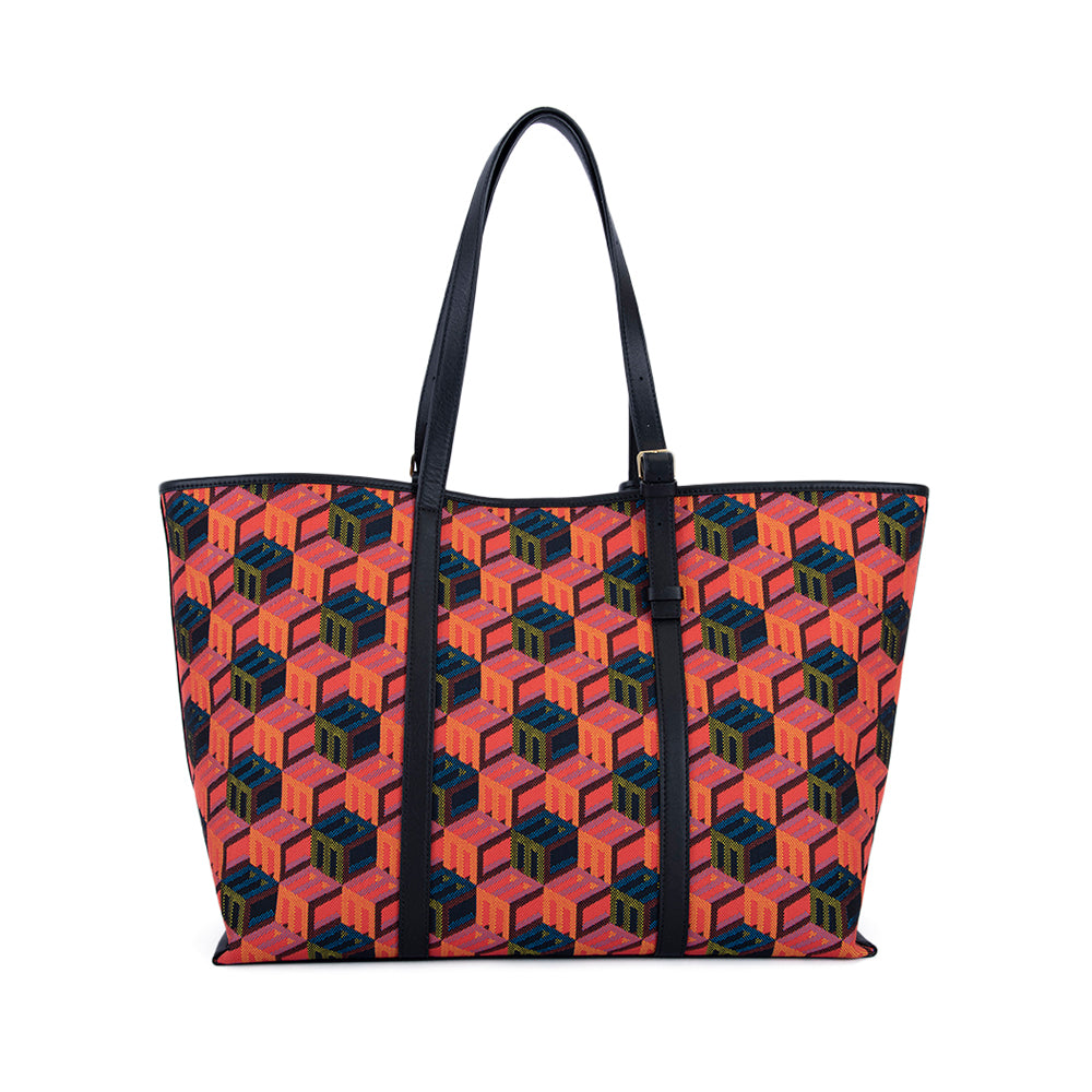 MCM Cubic Logo Jacquard Shopper Bag Multi Medium