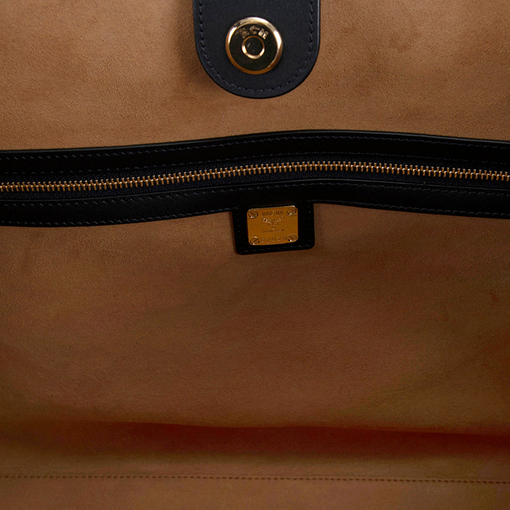 The Cubic Monogram, a new code for the next MCM chapter, represents the Haus's multidimensionality. On this medium jacquard shopping bag with a soft nappa leather finish, the unique logo is repeated. An accompanying tiny pouch may be stored within the spotless inside made of microfiber suede or carried on its own for more casual occasions.