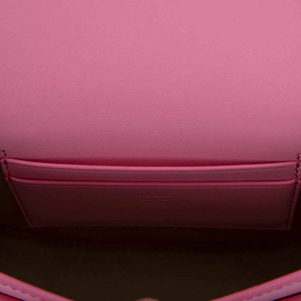 A classic member of the MCM family now features an embossed Spanish leather body in a seasonal colorway. Despite its demure size, the mini Tracy crossbody bag is a prominent companion with an exterior slip pocket for quick access to Arens. Prized possessions are secured inside a lush microfiber interior by the timeless Laurel Lock. Mobile versatility is realized through leather loops at the back, allowing the elegant companion to be converted into a bold belt bag.