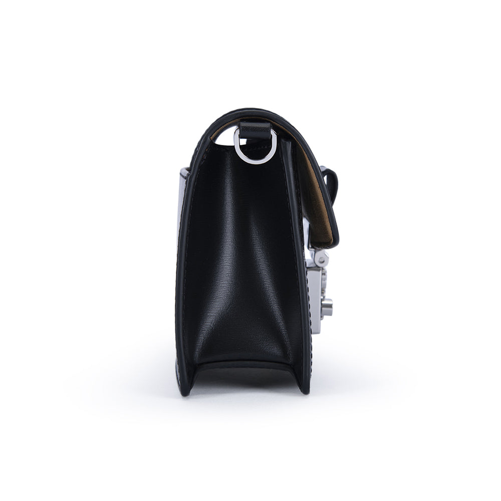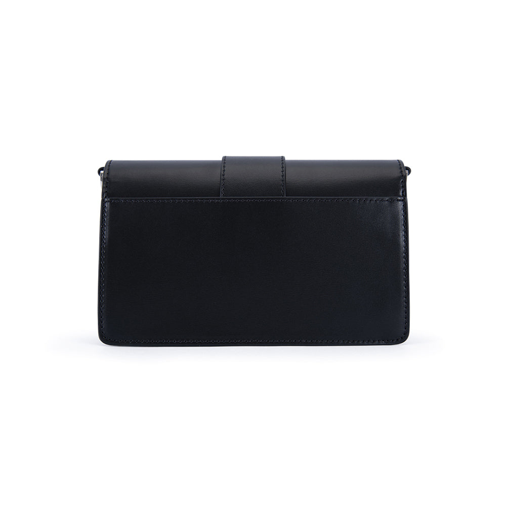 Mini crossbody in Spanish calf leather with Cubic monogram motif.The Gretl or “pearl” crossbody bag mirrors the refined depth and petite form of its namesake gemstone through an embossed Cubic monogram. Sculpted in Spanish calf leather the precious companion features a microfiber suede interior with card slots and a zip pocket for prized possessions. A lightweight chain strap completes the accessory for handsfree sophistication.
