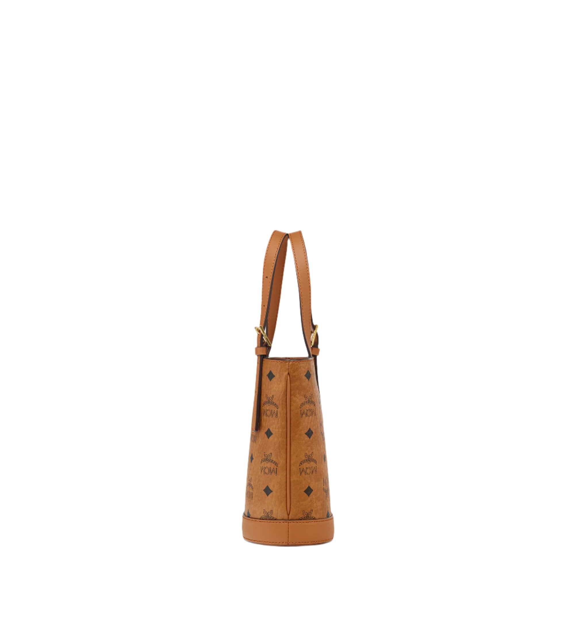 Drawing from a deep well of artisanal knowledge, this mini bucket tote melds a classic silhouette with the enduring craftsmanship of MCM. The rounded silhouette is accompanied by a leather crossbody strap for hands-free wear.