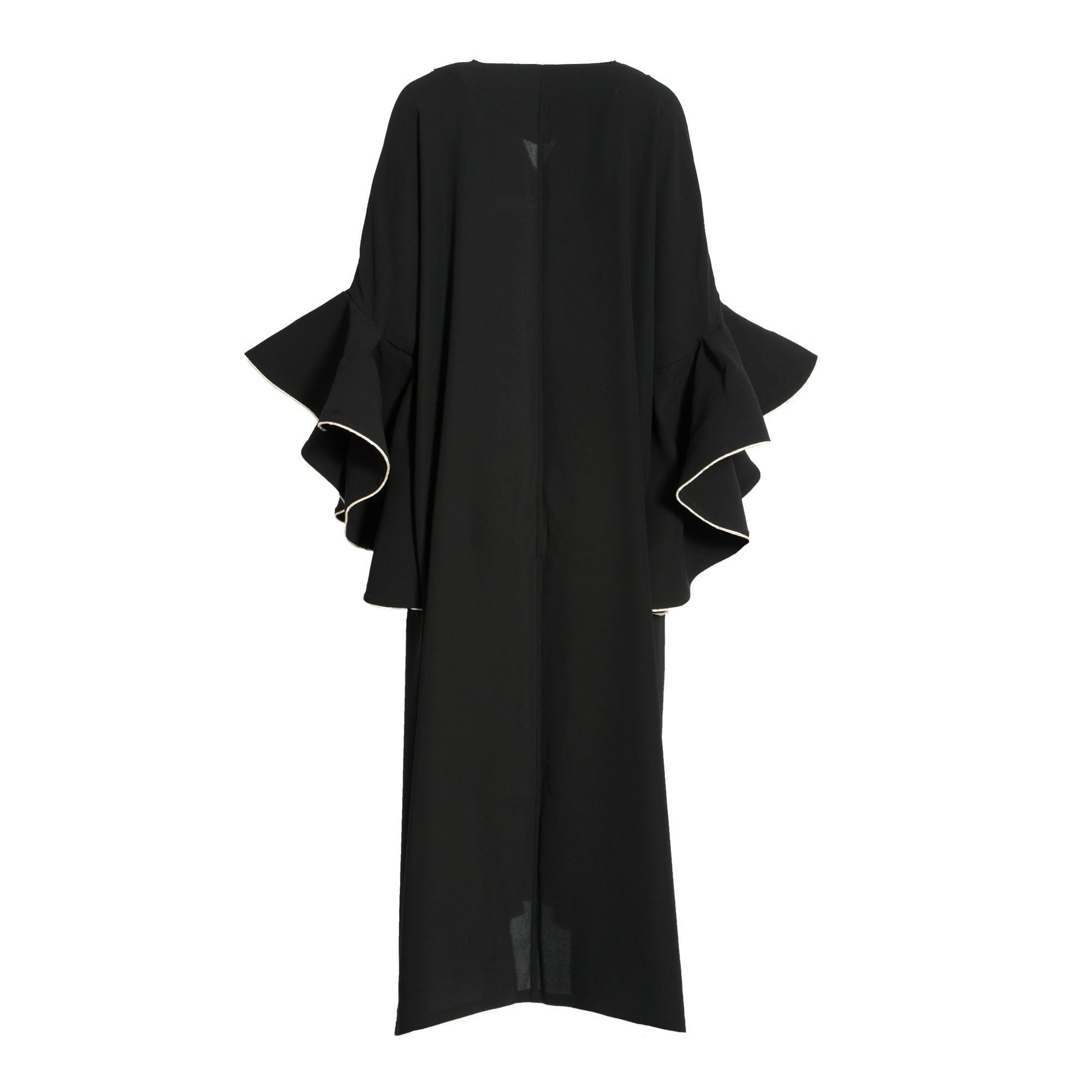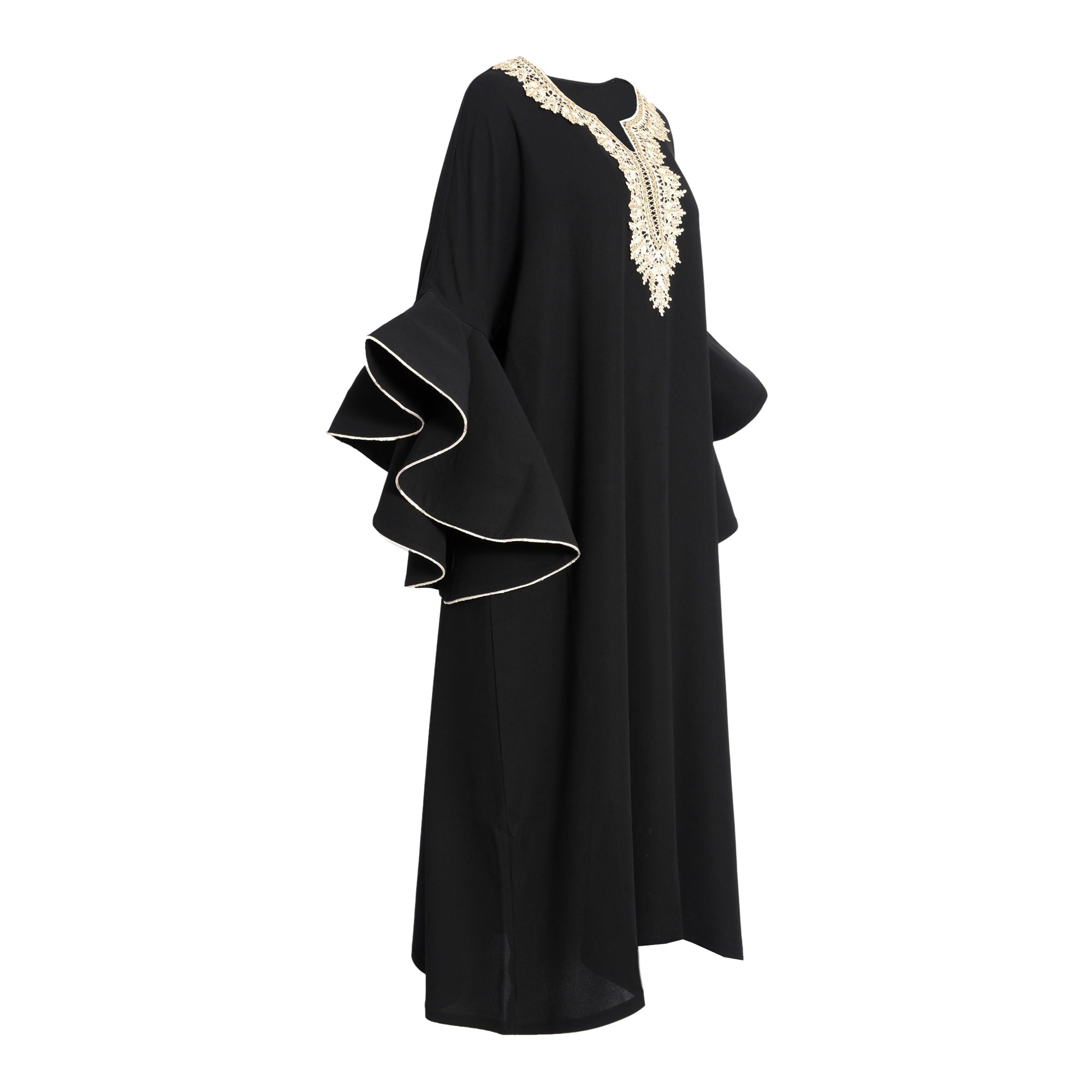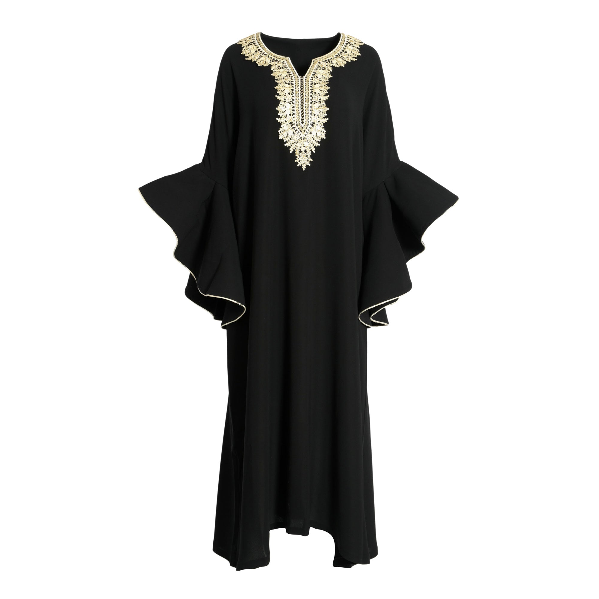 This Fahm Women's Black Dress is a perfect choice for any special occasion. The dress features a unique and stylish embroidery to the front , with long bell sleeves and a round neck with slit. The fabric is lightweight and comfortable, making it perfect for any season. The free size makes the dress perfect for a variety of body sizes and shapes. The dress is sure to make a statement and make you feel beautiful and confident. Whether you're attending a formal event or just spending an evening out with friends, you'll be sure to impress in this Fahm Women's Black Dress. SPECIFICATIONS: