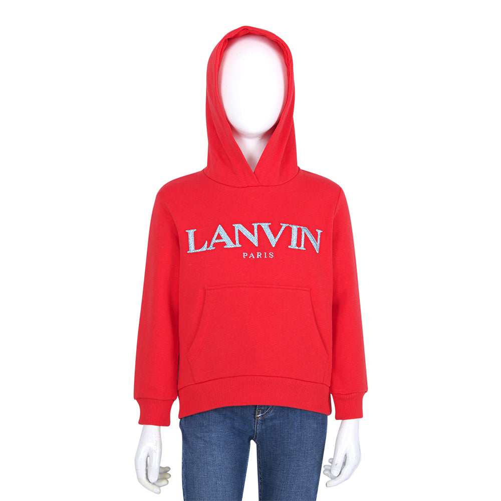The Lanvin Kids Bright Red Sweatshirt is an ideal choice for chilly weather days. This lightweight sweatshirt features an logo patch at the chest, a hood, front pockets, long sleeves, ribbed trim and a straight hem. Crafted from soft cotton, this cozy sweatshirt is breathable and comfortable so your little one can stay warm while still being able to move around. The red colors make it easy to pair this sweatshirt with any outfit, making it perfect for days spent at school, playing outdoors, or running errands. Whether your little one chooses to wear it with jeans or shorts, this versatile sweatshirt is sure to become a fast favorite. SPECIFICATIONS