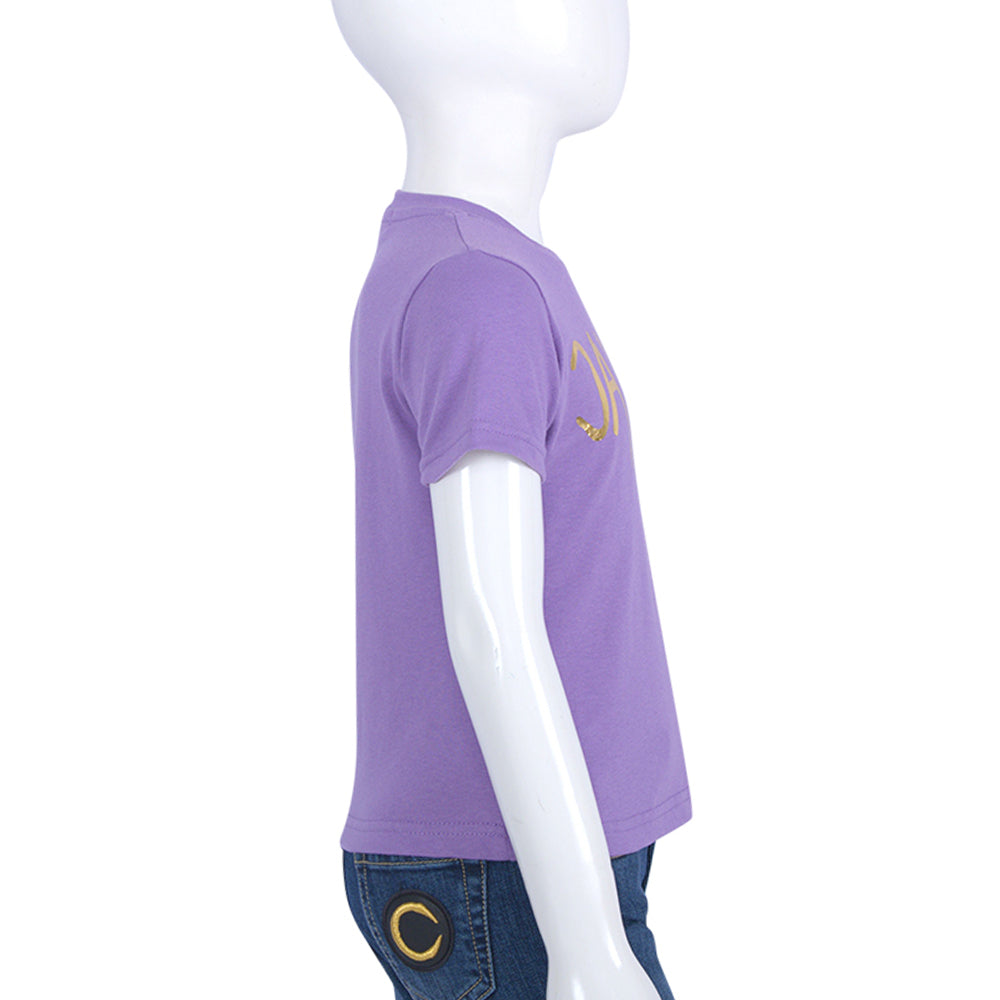 This Roberto Cavalli Black/Lilac and gold T-shirt is a sharp and stylish choice for your young one. Crafted from a stretch cotton blend, this T-shirt is adorned with the Italian fashion house’s logo at the chest for an enhanced look. The round neck cut, short sleeves and straight hem crisp up the style even more. Team it with denim jeans, canvas shorts, or any other smart casual trouser of your choice for a stylish look. SPECIFICATIONS