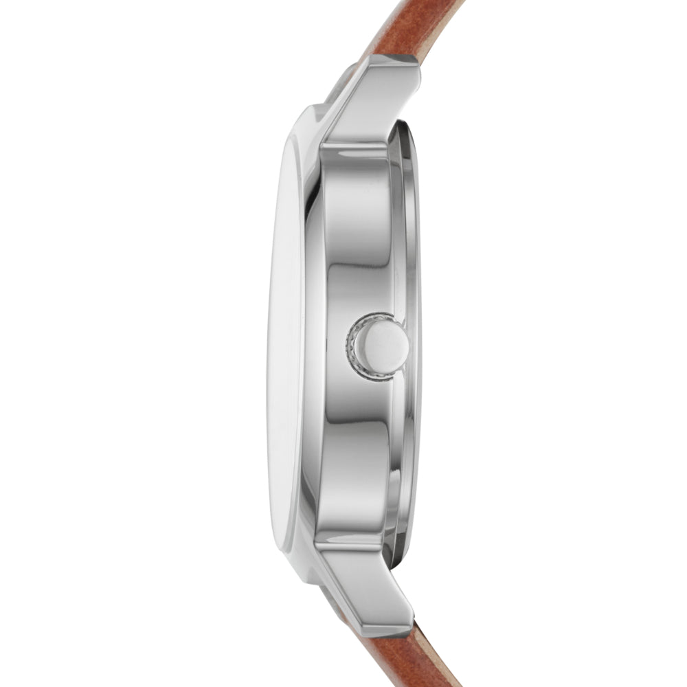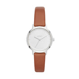 DKNY Modernist Casual Silver Tone Case With Brown Leather Strap Ladies Watch Quartz 32mm
