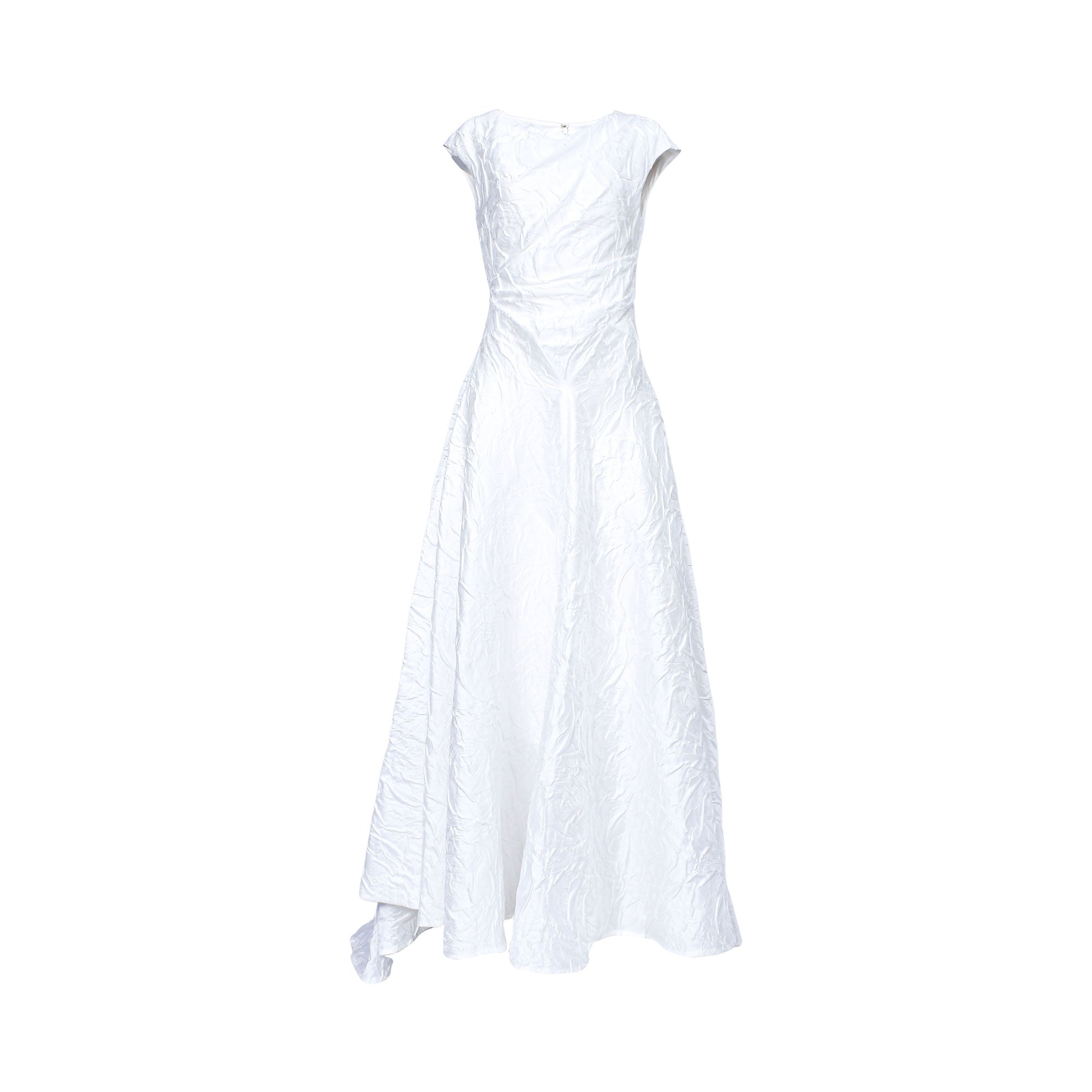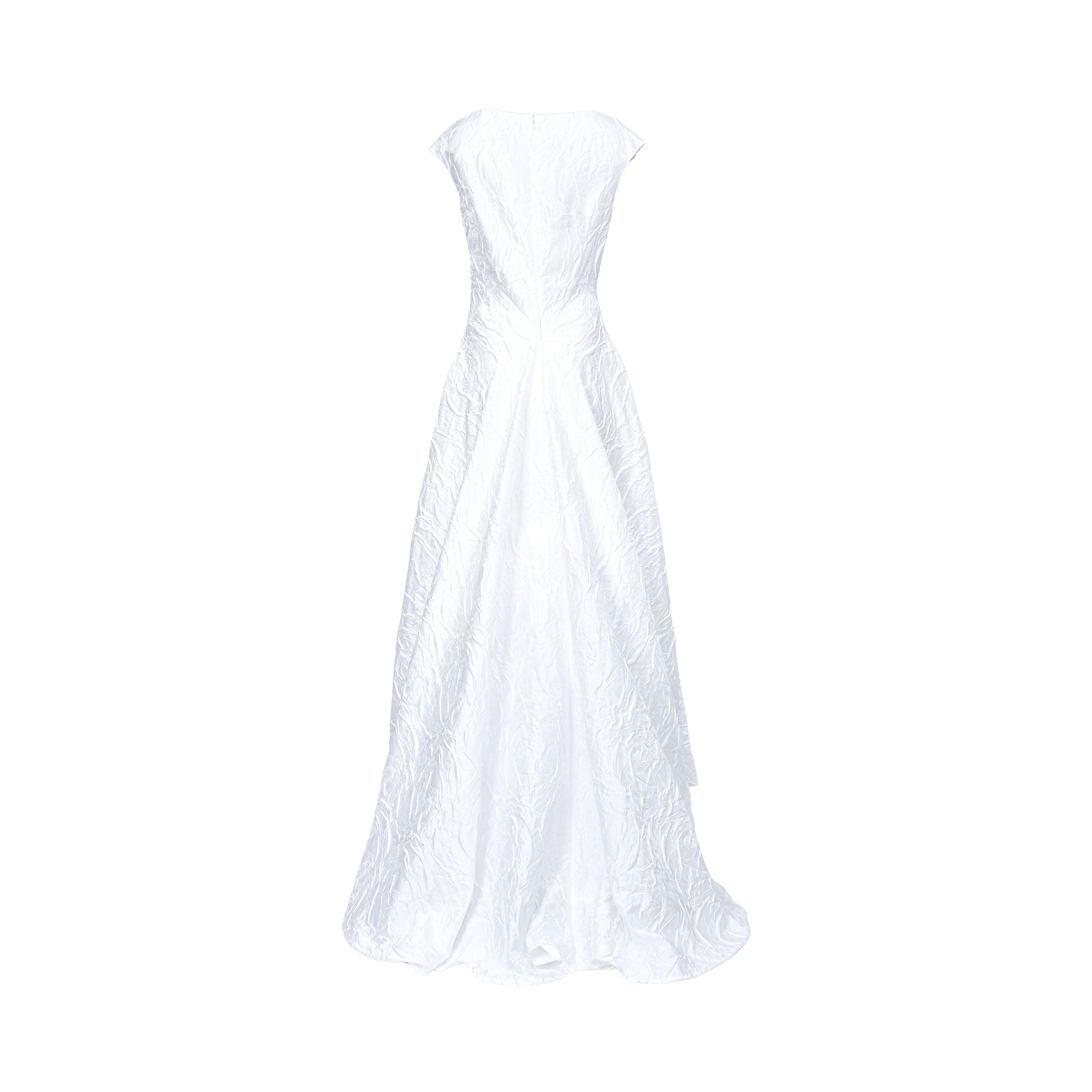 Talbot Runhof Women's Ivory Long Dress is a stunning and elegant piece that features a slim fit, fit & flare silhouette. The dress has a flared skirt that adds volume and movement to the design, creating a feminine and flattering look. The U-Boot-cutout neckline adds a touch of modernity and sophistication to the dress, while the cap sleeves provide a bit of coverage. In terms of practicality, the dress has a zipper on the back for easy wear and a perfect fit. The waist is draping, which accentuates the natural curves of the body and creates a flattering shape. One of the unique features of this dress is the crinkle effect, which adds texture and visual interest to the fabric. It gives the dress a playful and dynamic look, making it stand out from traditional ivory dresses. Talbot Runhof Women's Ivory Long Dress is a beautiful and versatile option for special occasions, with its combination of a flattering fit, elegant design elements, and unique details. It is a must-have for those looking to make a statement with their fashion choices.