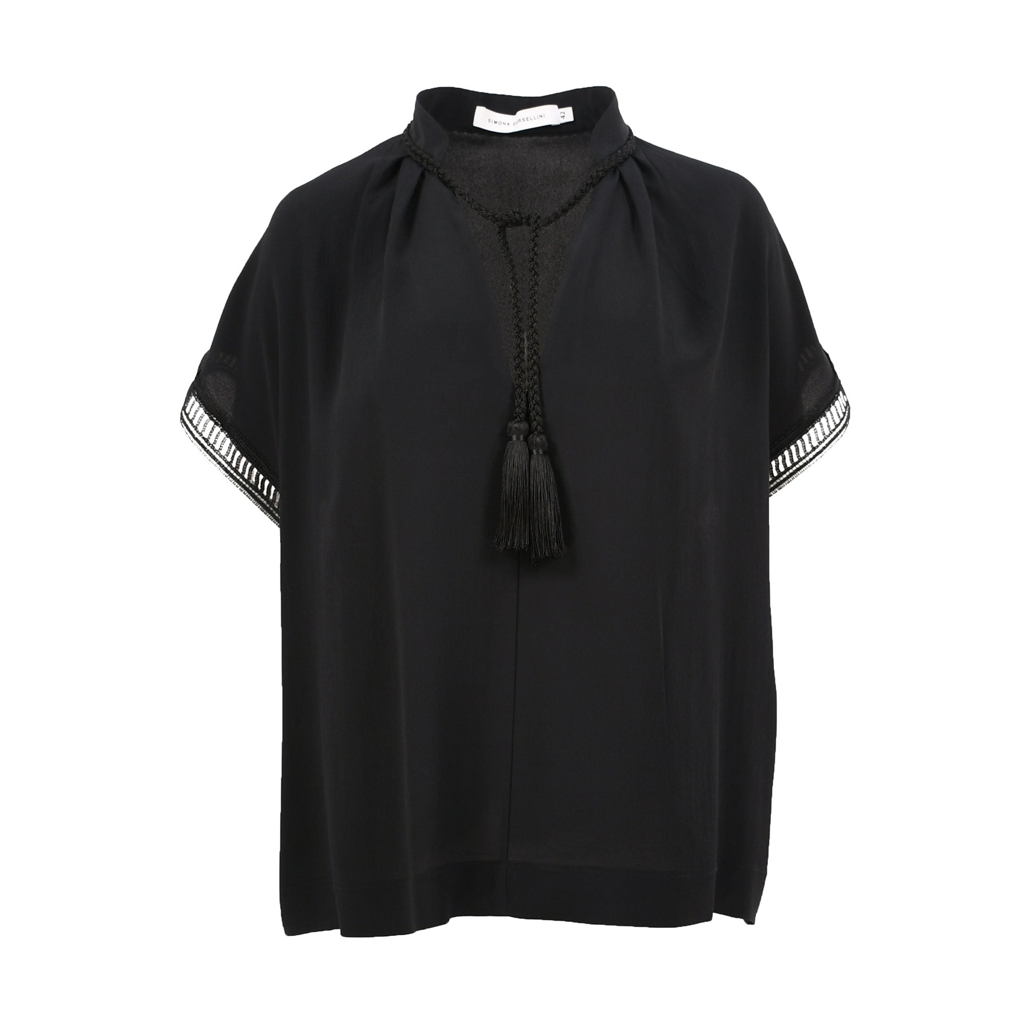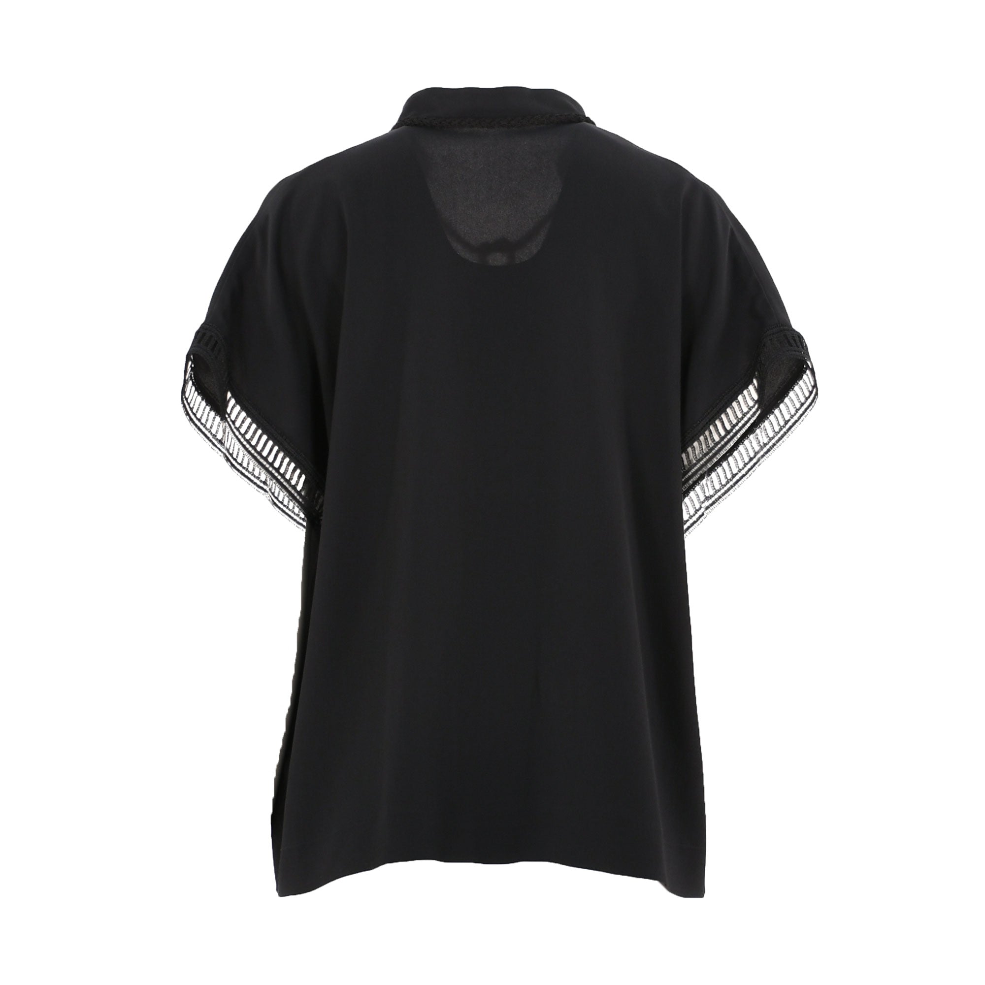 | Simona Corsellini's most latest top has gotten a lot of attention for its sophisticated and fashionable look. It has been expertly stitched to enhance your overall appearance. The sleeves of this top are lace, and the front has a tassel. This top's versatility is enhanced by its collared neckline and straight hemline. It has a loose fit that gives the wearer a sophisticated appearance. SPECIFICATIONS :