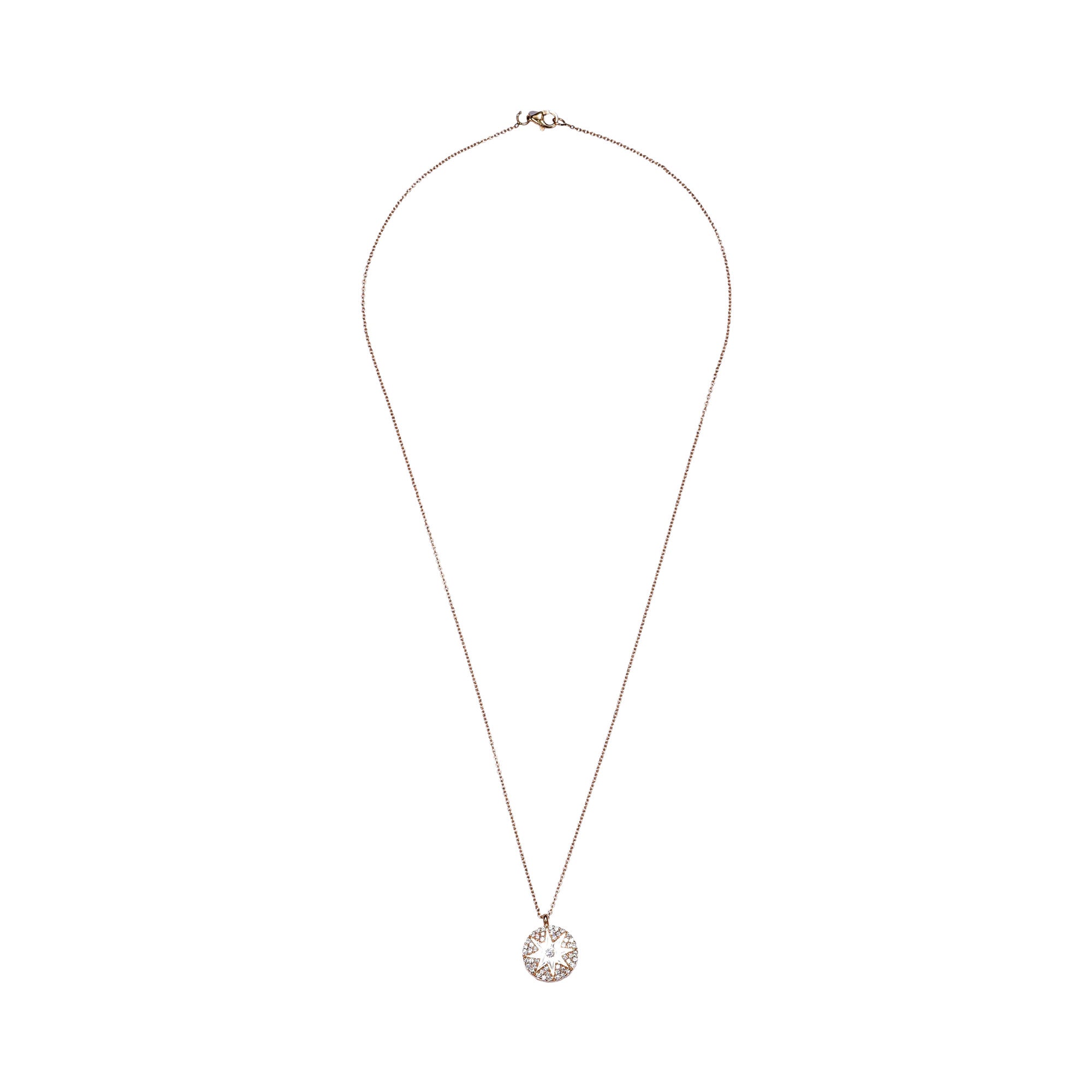 This captivating pendant necklace from Ouzounian Jewelry features a mesmerizing orb-shaped design adorned with sparkling diamonds. The intricate detailing and high-quality craftsmanship make this necklace a truly unique and eye-catching piece. The pendant is suspended from a delicate chain, adding to its overall elegance.