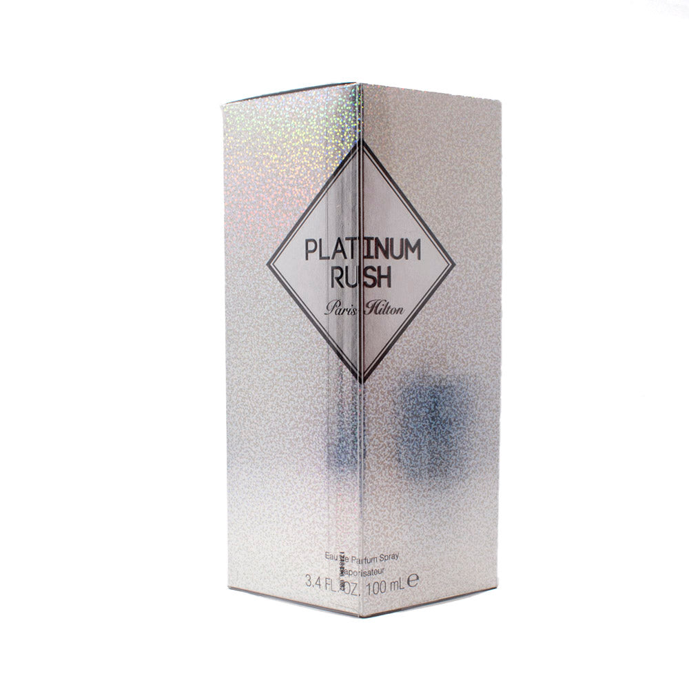 Paris Hilton Platinum Rush is a fruity and floral scent that exudes a sense of luxurious glamour and femininity. The opening notes of pear, mango, and red apple are juicy and sweet, followed by a fresh and aquatic mix of watery notes, magnolia, and lily-of-the-valley. As the fragrance settles, warm base notes of cashmere musk, patchouli, and amber add depth and longevity. This perfume is perfect for any occasion, whether it's a casual day out or a special evening event. With its sleek and elegant packaging, Platinum Rush reflects Paris Hilton's signature style and caters to the modern, fashionable woman. So, if you're looking for a sophisticated and radiant fragrance, Platinum Rush by Paris Hilton is a must-try. SPECIFICATIONS
