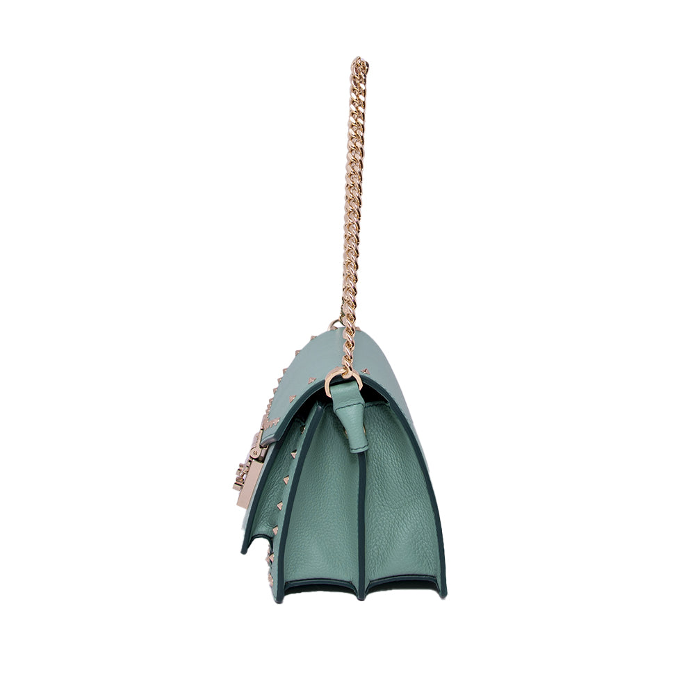 Wear this crossbody during the day with a simple t shirt and your favorite denim. The polished laurel lock and studs will add a subtle hint of shine to your look.