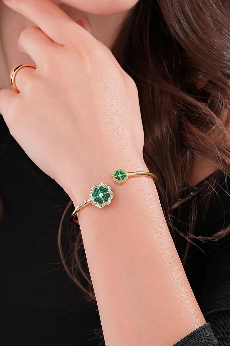 PEJLG0003201 PE FLORA GP CLOVER MALACHITE W CRYSTAL BANGLE
