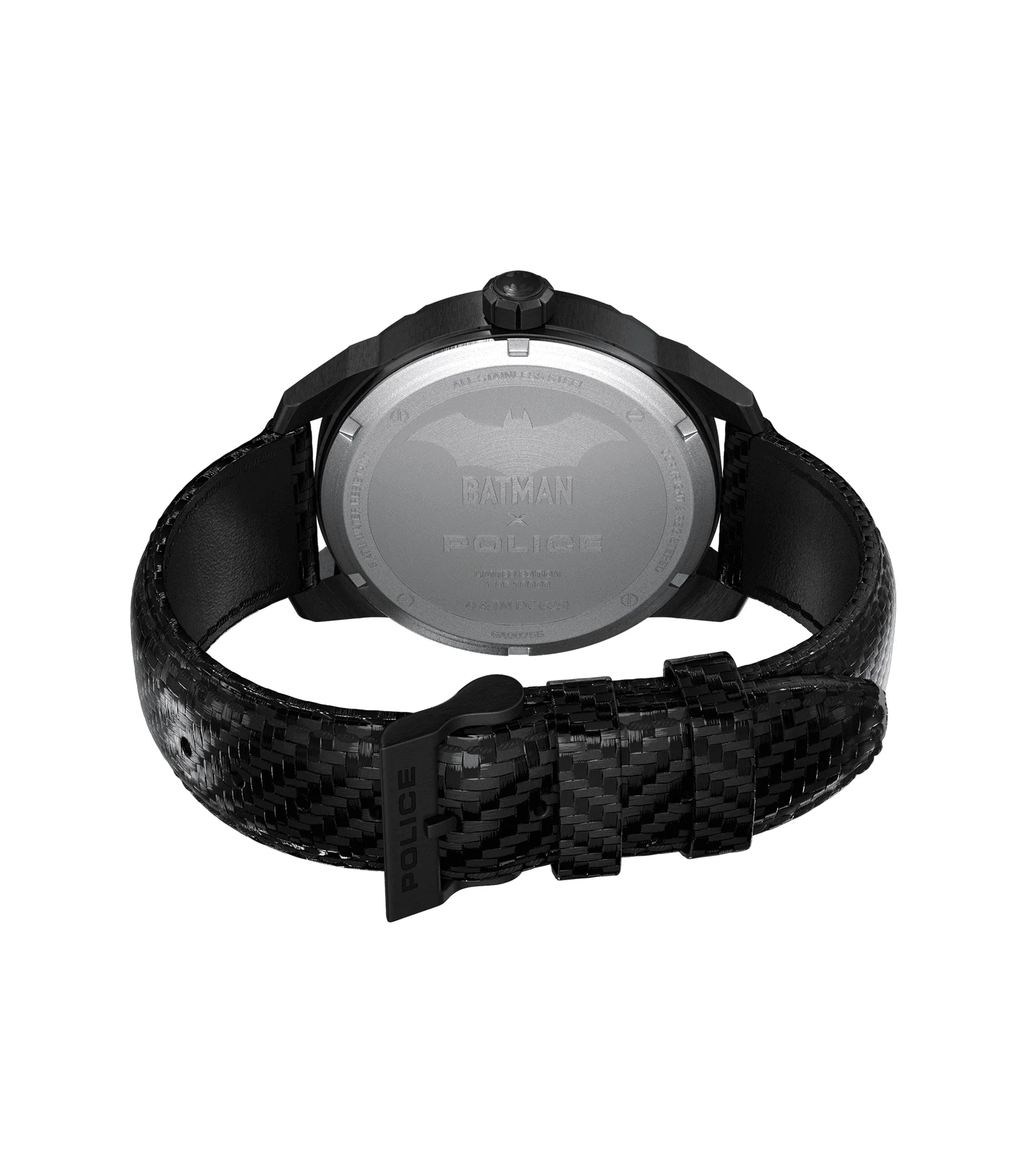 Police The Bat Gents Black Dial Black Leather Strap Watch
