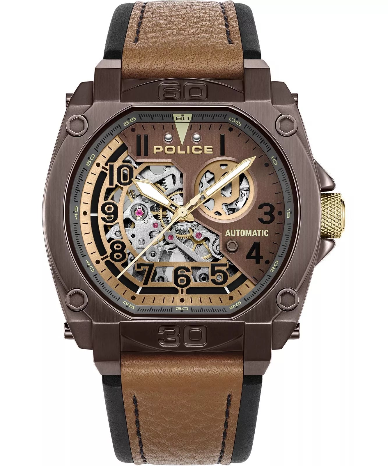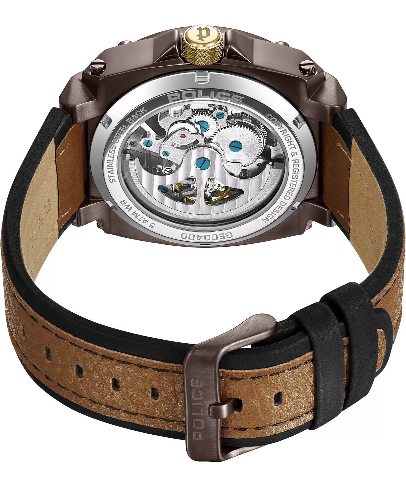 The Police Norwood Skeleton Automatic is a versatile watch that can be worn for both casual and formal occasions. The skeleton dial and brown leather strap make it a stylish and eye-catching piece. The chronograph function adds a sporty and dynamic touch.