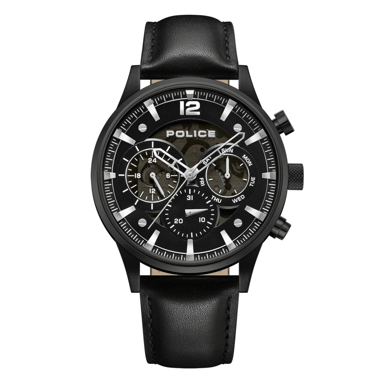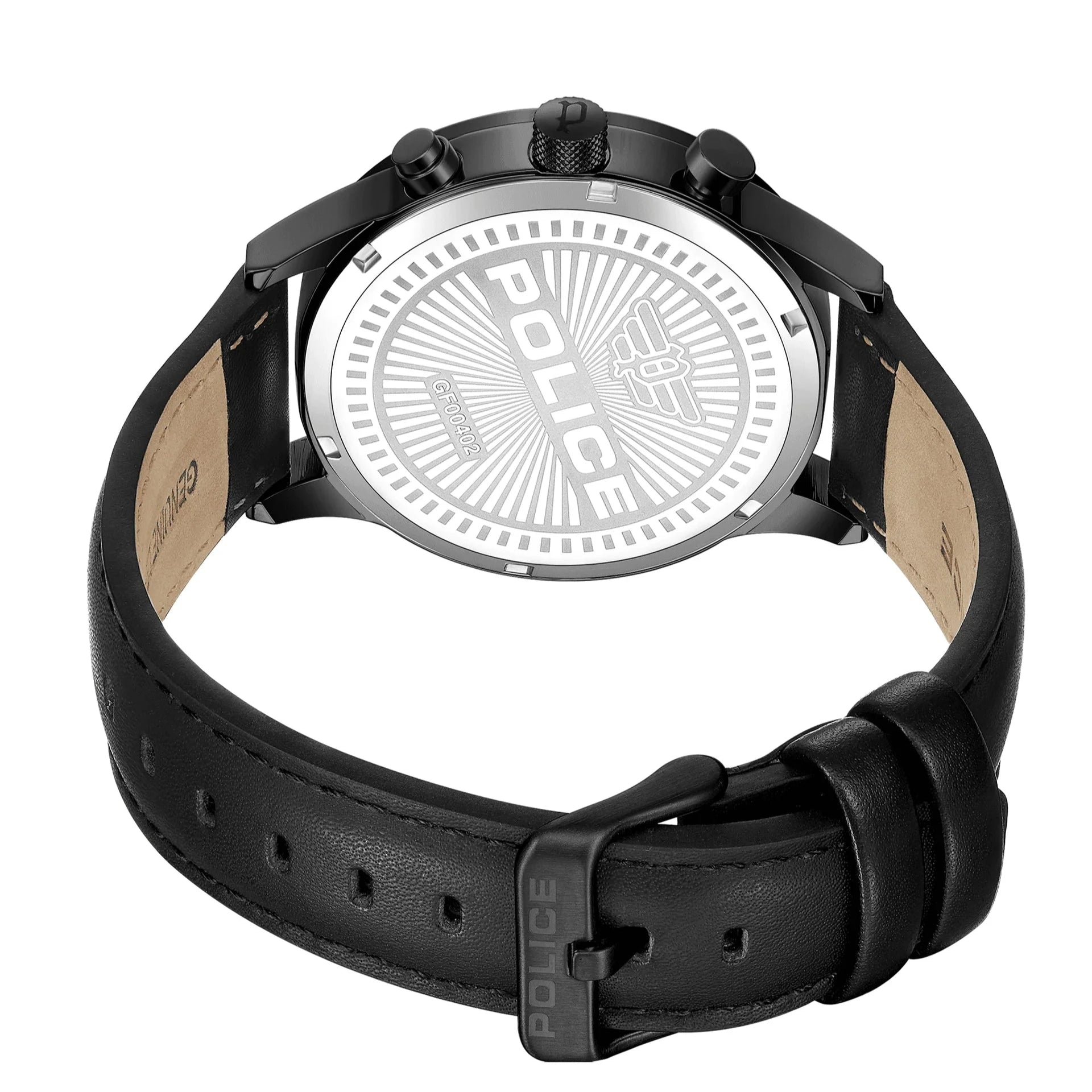 Police Driver II Gents Semi-Transparent Grey Dial Black Leather Strap Watch