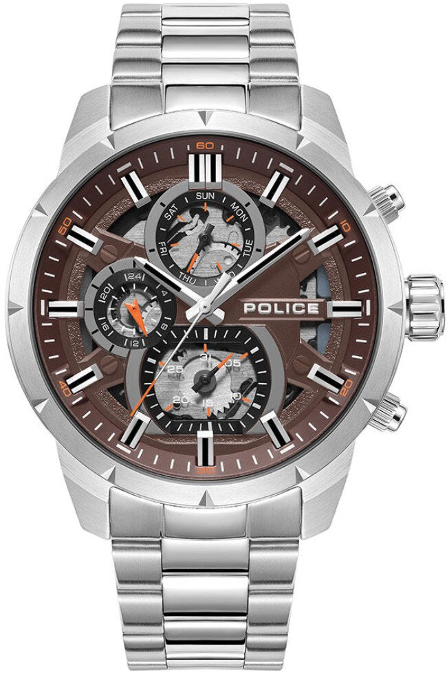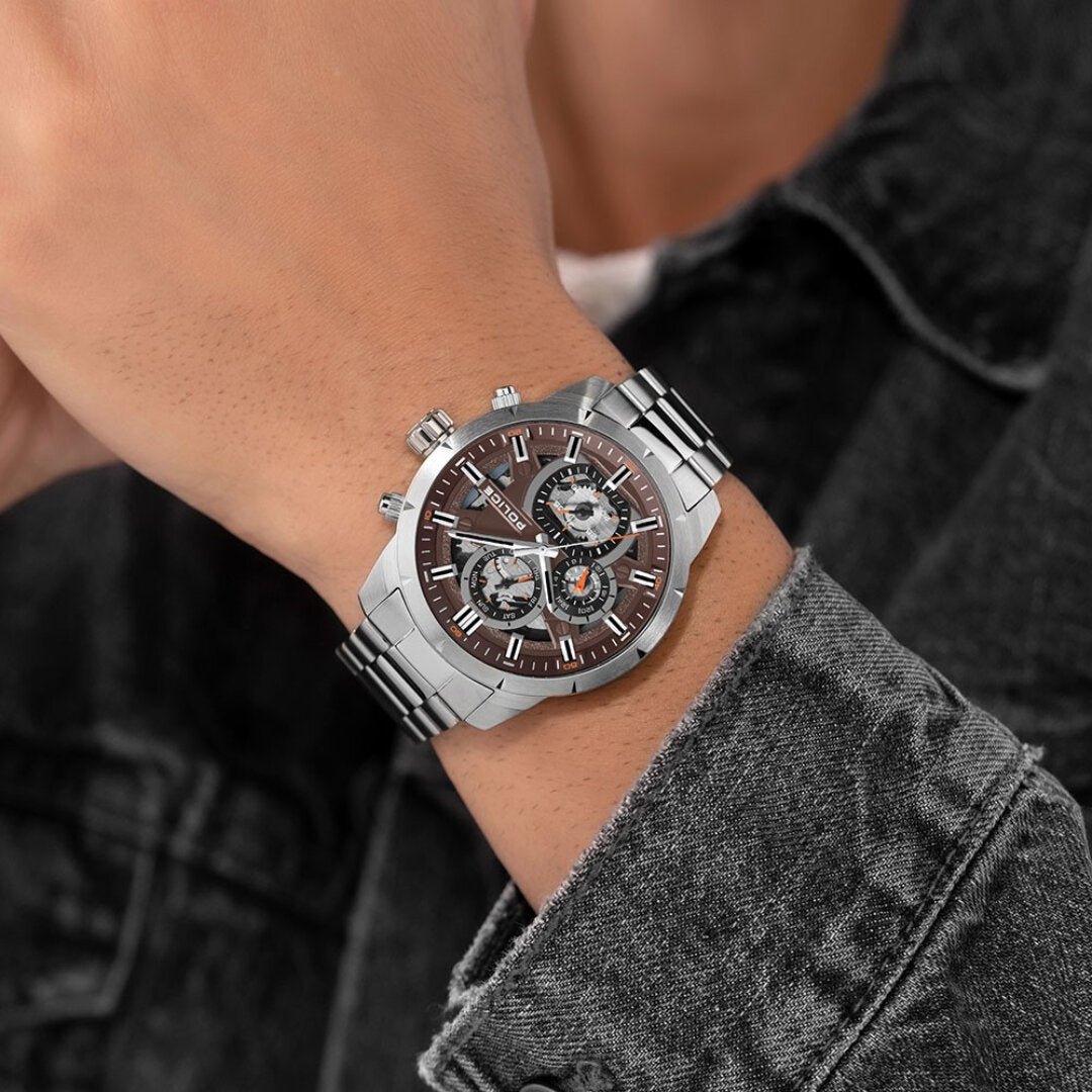 Police Neist Gents Brown Dial Silver Stainless Steel Watch