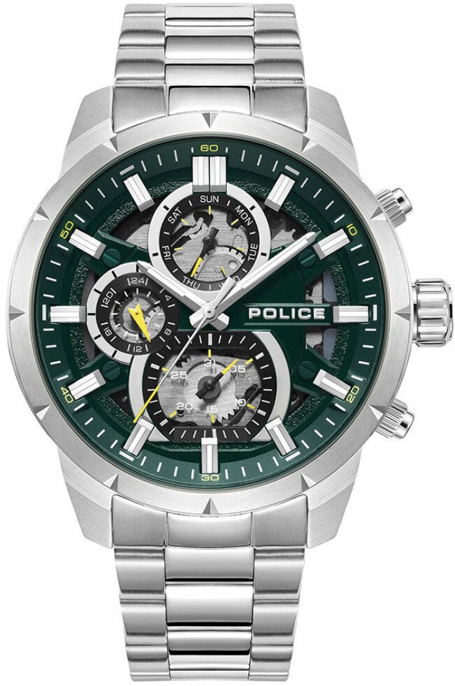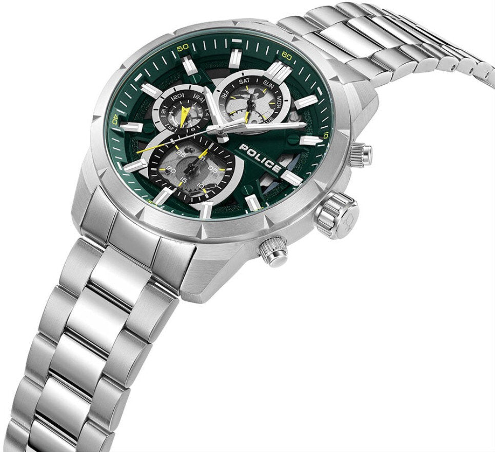 Police Neist Gents Green Dial Stainless Steel Silver Watch
