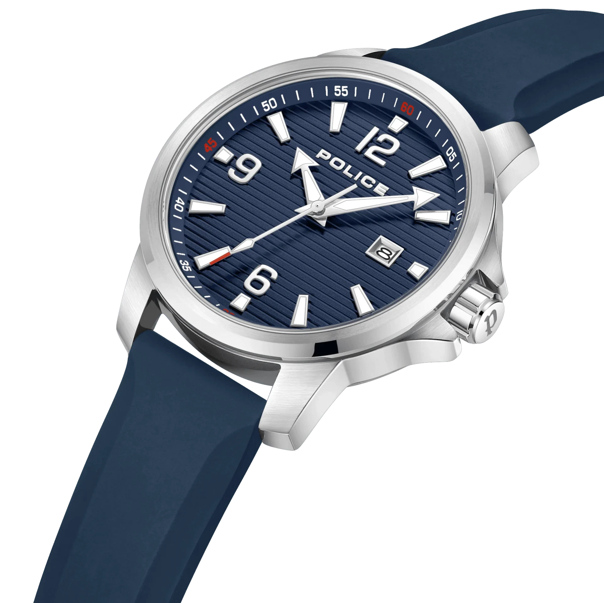 Police Mensor Gents Blue Dial Blue Silicone Strap Watch