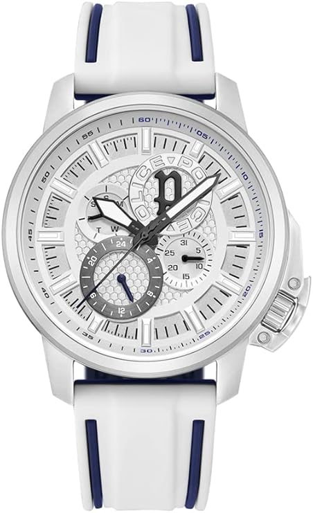 Police Kavalan Gents White Dial White Silicone Strap Watch