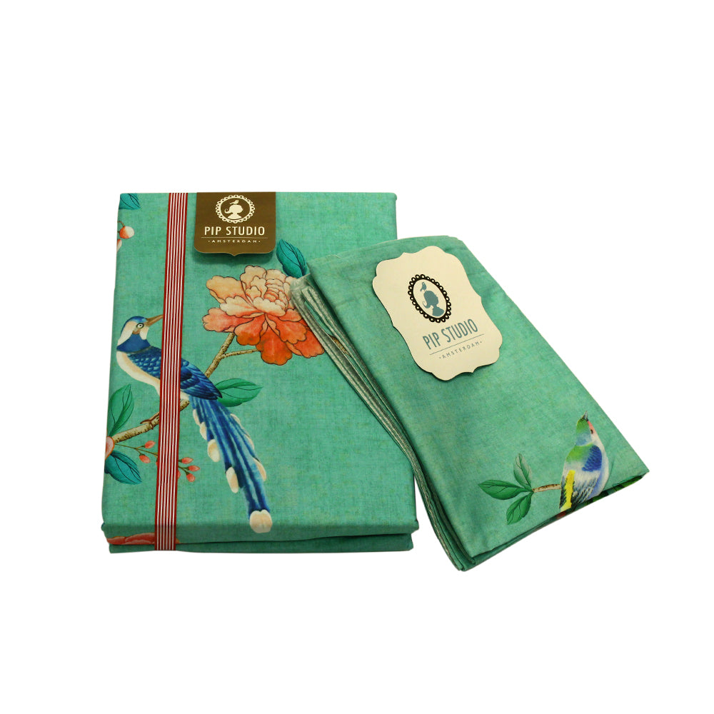 This lovely soft green duvet cover is made of finely woven percal cotton that breathes well and is suitable for every season. 'Good Morning' is a gorgeous scene of tropical flowers and birds of paradise, inspired by classical India.
