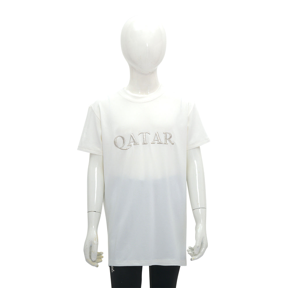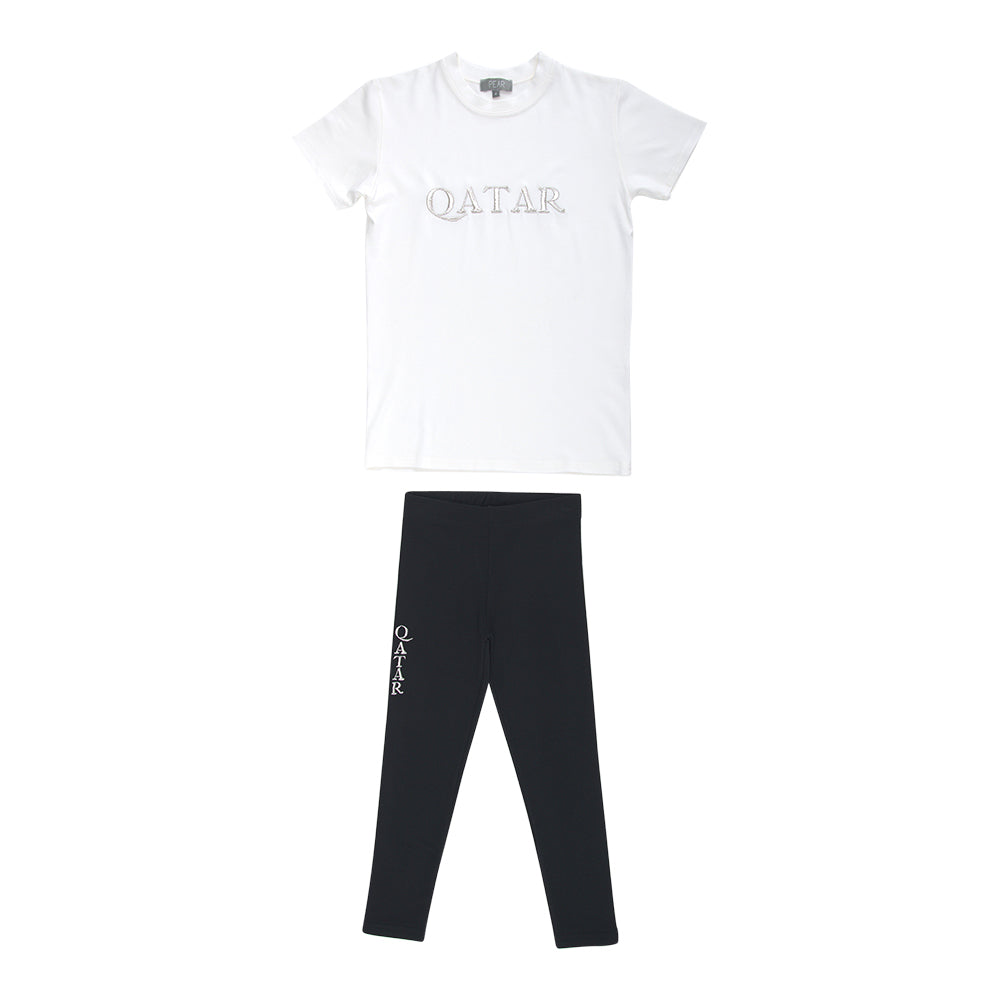 This Pear Qatar Off-White Set Top & Leggings will easily become your go-to outfit for summer get-togethers! Crafted from a lightweight fabric, this set provides an effortless look and feel. The top has a round neck, short sleeves and a straight hem that fall comfortably on your body. The brand's logo is displayed at the front, while a logo is featured on one side of the leg. To complete the look, the accompanying leggings feature an elasticated waist for optimum comfort. Perfect for everything from picnics with friends to nights spent indoors, this set is stylish and versatile.