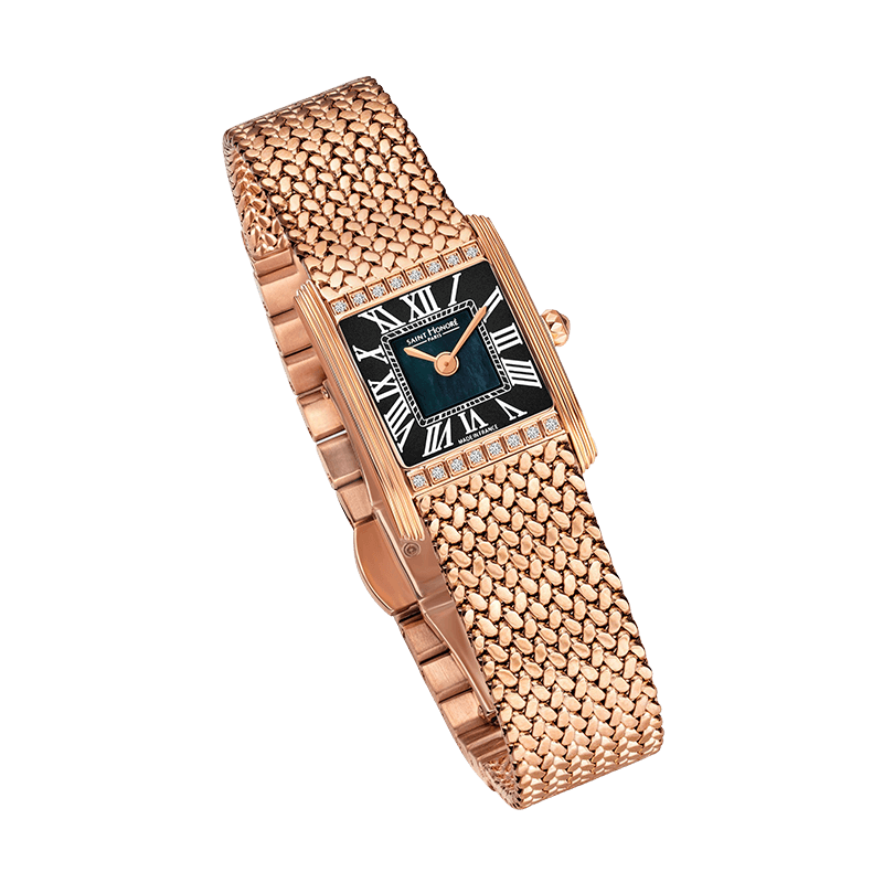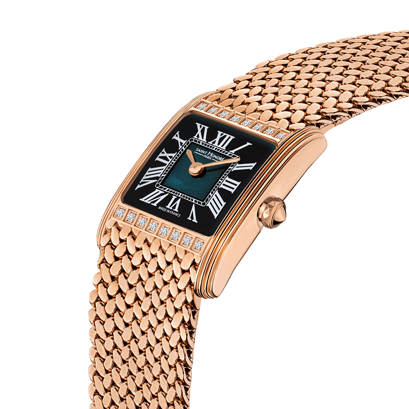 With a square-shaped dial crafted from black mother-of-pearl and surrounded by classic Roman numerals, this French-made timepiece is the perfect addition to your wardrobe. The stainless steel mesh bracelet and diamond-set case of the Palais Royal watch perfectly complement each other.