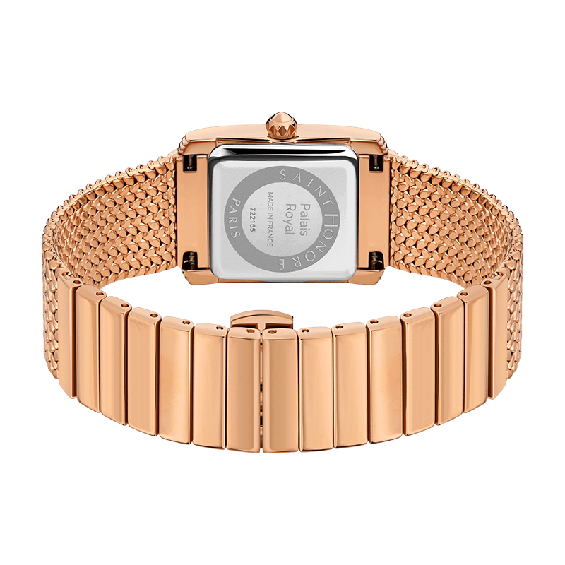 With a square-shaped dial crafted from green mother-of-pearl and surrounded by diamond-set indexes, this French-made timepiece is the perfect addition to your wardrobe. The stainless steel mesh bracelet and diamond-set case of the Palais Royal watch perfectly complement each other.