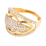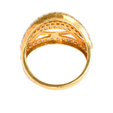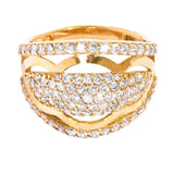 This stunning diamond ring from Ouzounian Jewelry features a unique wave-like design adorned with sparkling diamonds. The intricate detailing and high-quality craftsmanship make this ring a captivating and eye-catching piece. The curved silhouette and shimmering diamonds create a luxurious and modern aesthetic.