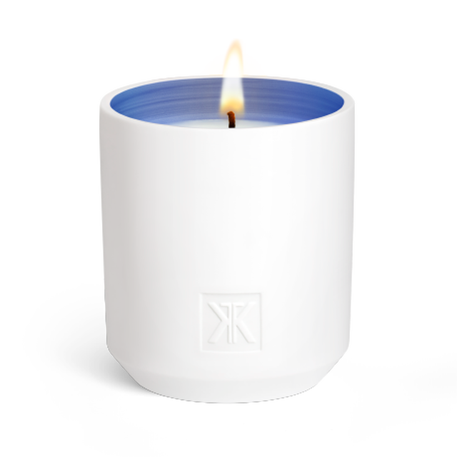 | "Part of the ""Home Sweet Homes"" collection, the Es Cap Maison Francis Kurkdjian scented candle captures the atmosphere around a refurbished barn, where the minimal meets the essential. In this house situated in the south of Formentera, preveil the elegance of simplicity, the luxury of silence, a dreamy environment for a stay untouched by time. Between a radiant blue sky and a red soil, burning white-hot from the summer sun, the candle evoques the fragrance of a fig tree, whose voice is carried by a warm wind whipping against the cliffs. The Es Cap Maison Francis Kurkdjian scented candle is presented in a porcelain jar from Limoges where the inside color is applied by hand. The French plant and animal wax holds a braided cotton wick to preserve the candle’s olfactory quality and ensure an optimal 55-hour burn time." Fig leaf, Cedarwood oil, Dry wood accord |