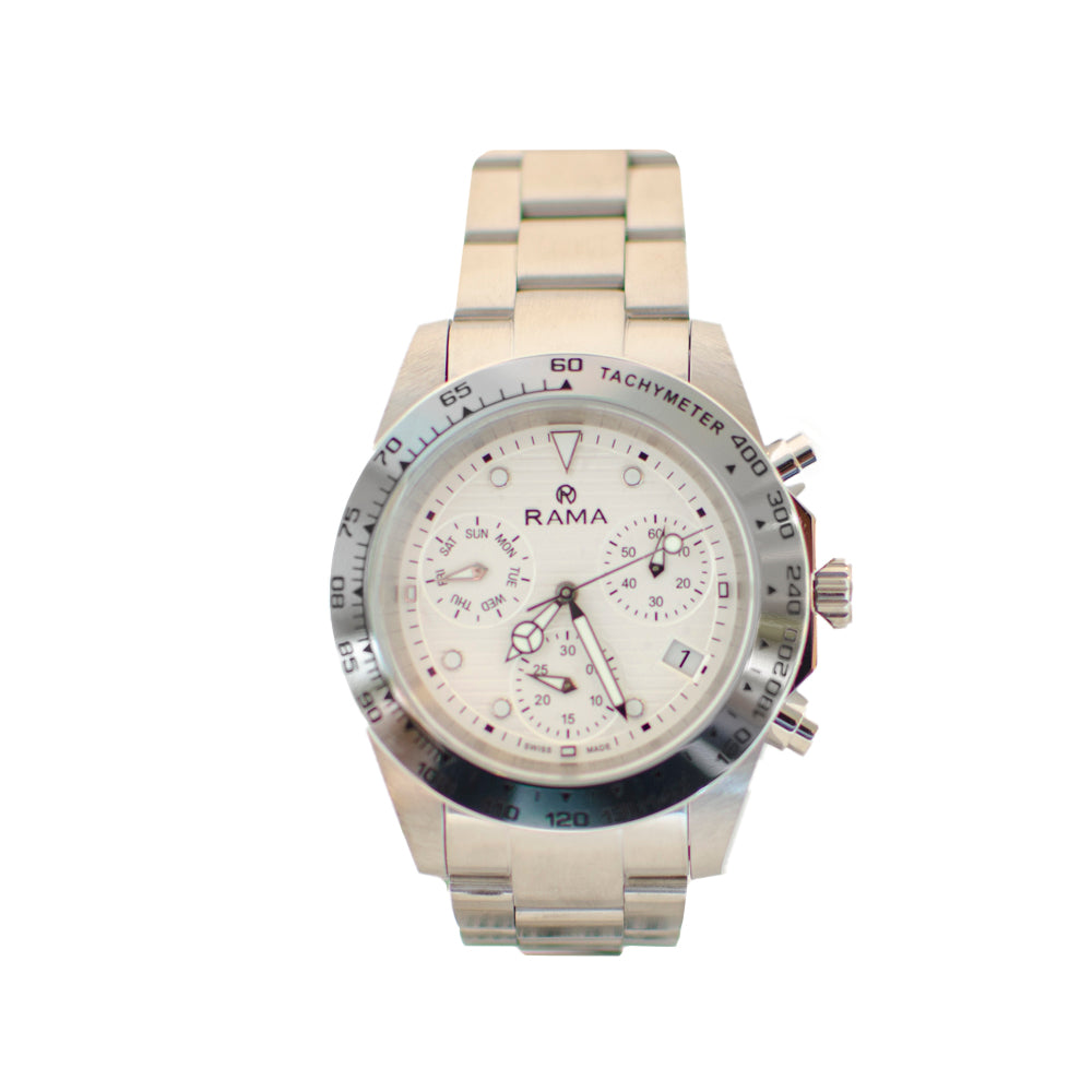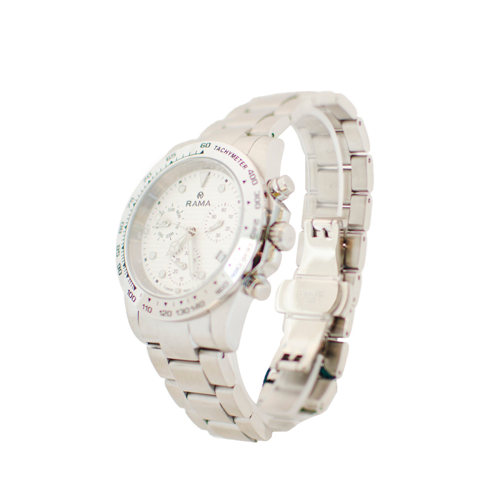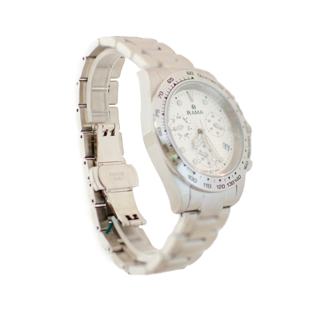 Rama mens watch stainless steel metal bracelet with white chrono dial quartz