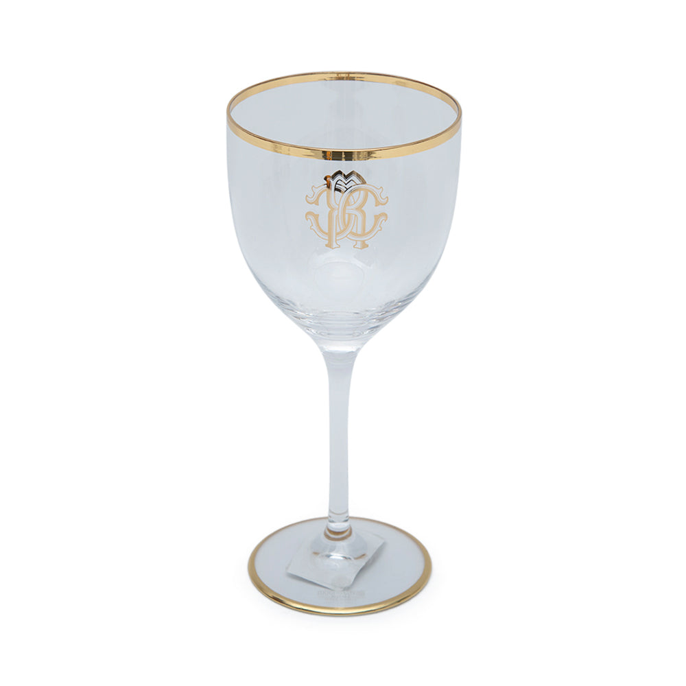 Roberto Cavalli Monogramma Gold Water Goblet - 8.5x19.5 H. Cm - Cap. 28 Cl ACQUA Set of 6pcs