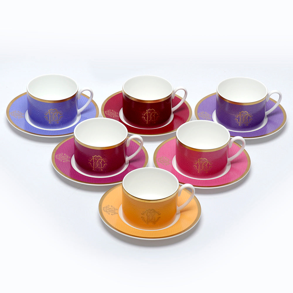 Roberto Cavalli Lizzard Sunset S6 Pz Tthe Set 6 Pcs Tea Cup Saucer