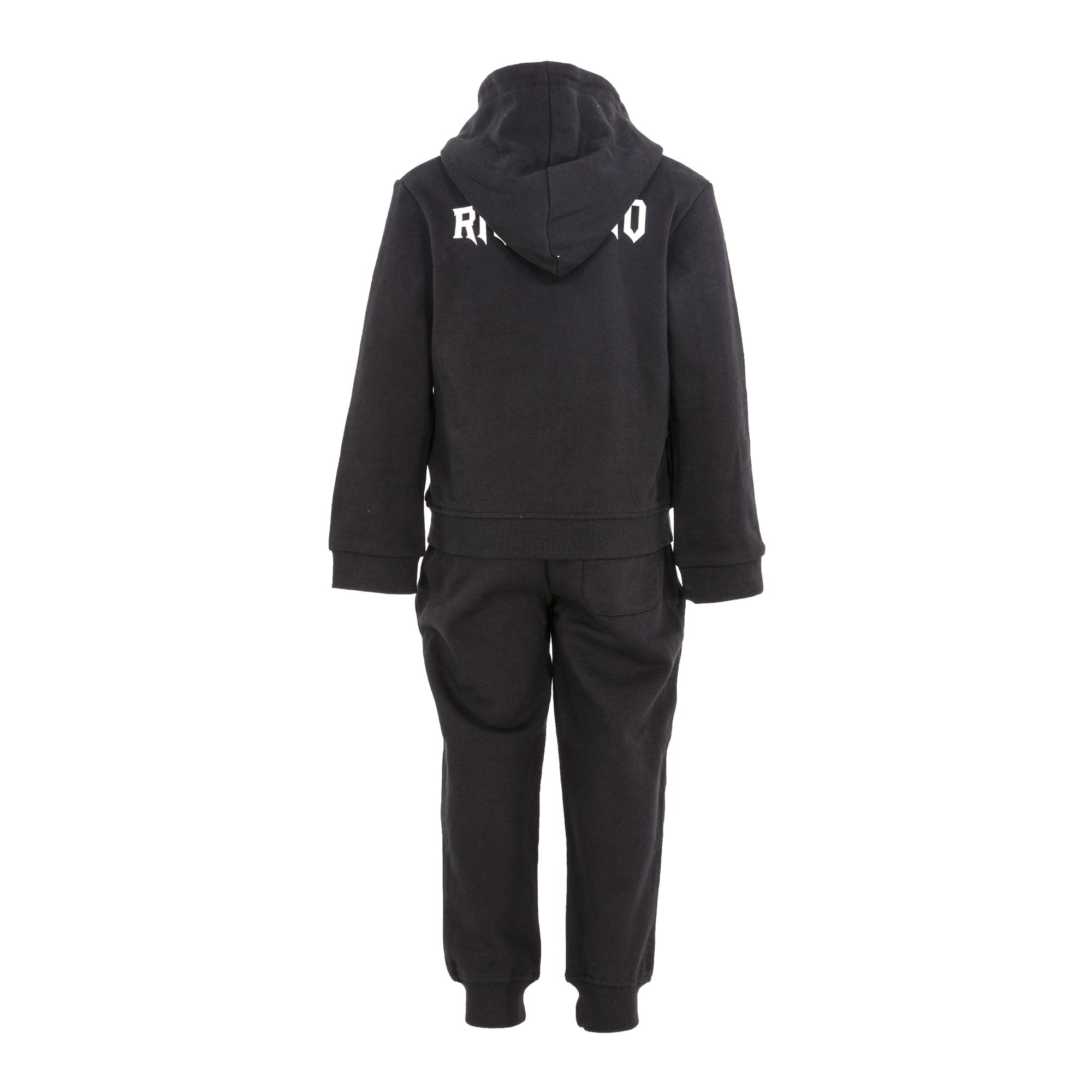 | Dress your child in comfort this season with the John Richmond Jogging Suit in black.This suit is soft and gentle on your child's skin. It has the white brand's logo printed on the front ,back and trouser , with long sleeves and hoodie. It has straight at the hem and drawstring waist with pockets in hoodie and trouser. It also has a relaxed fit that will keep your child comfortable throughout the day. SPECIFICATIONS :