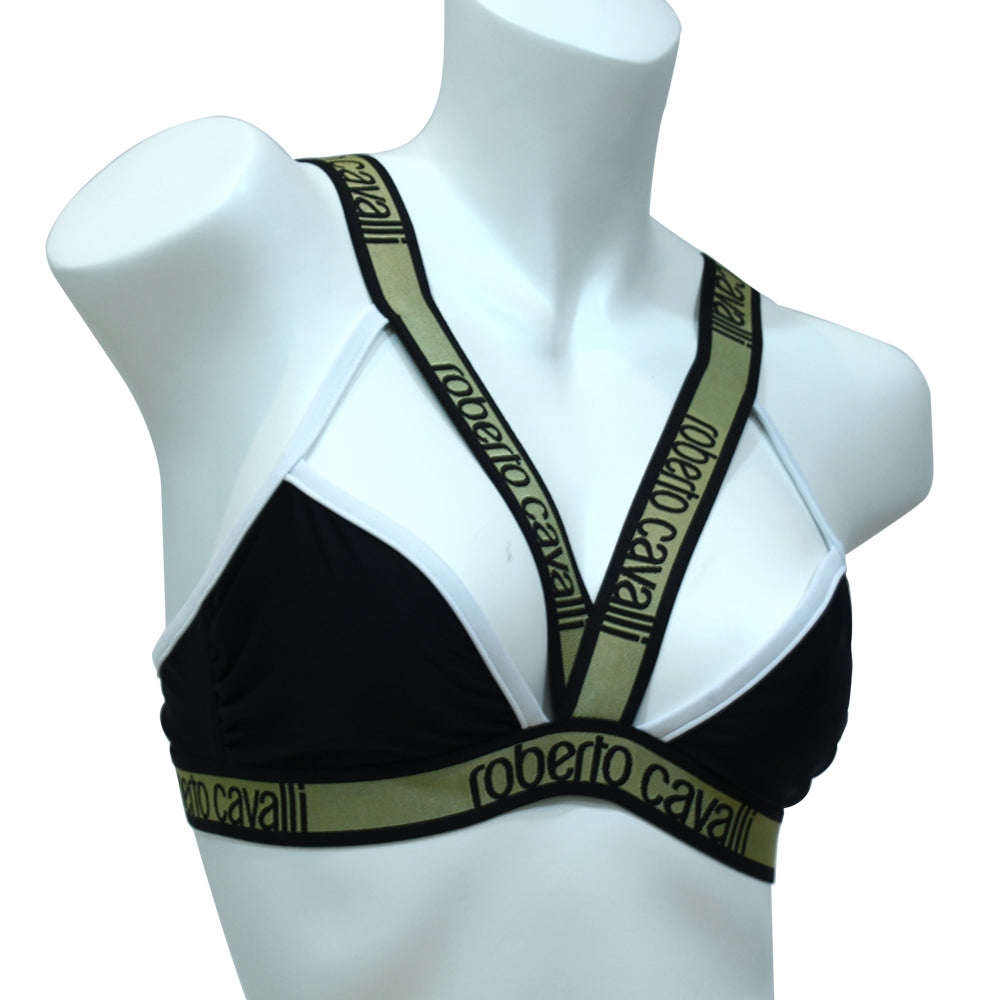 A figure hugging silhouette is emphasised with a subtle contrasting of black alongside opulent gold fabric. Combining sensual style with logomania detailing, the effect is ideal for a luxury escape.
