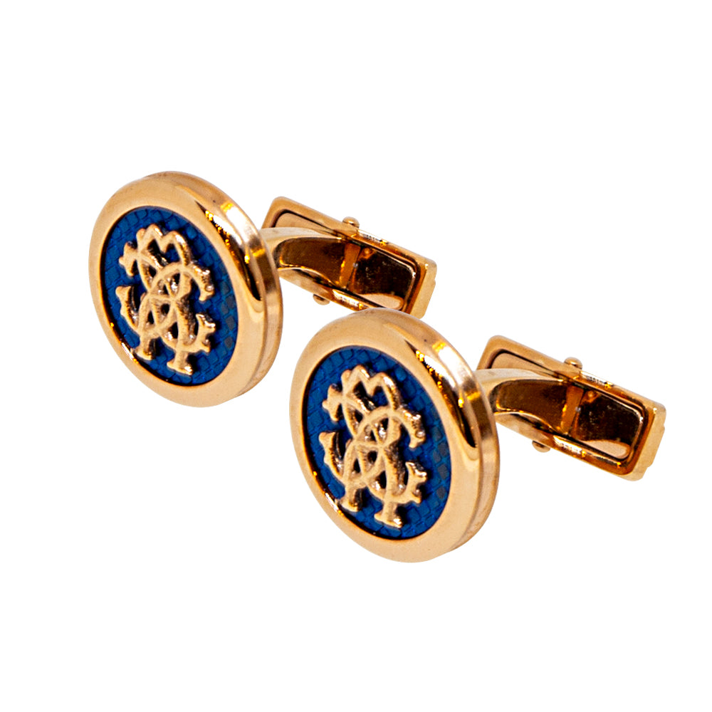 Roberto cavalli cufflinks rose gold with blue mid and rose gold logo