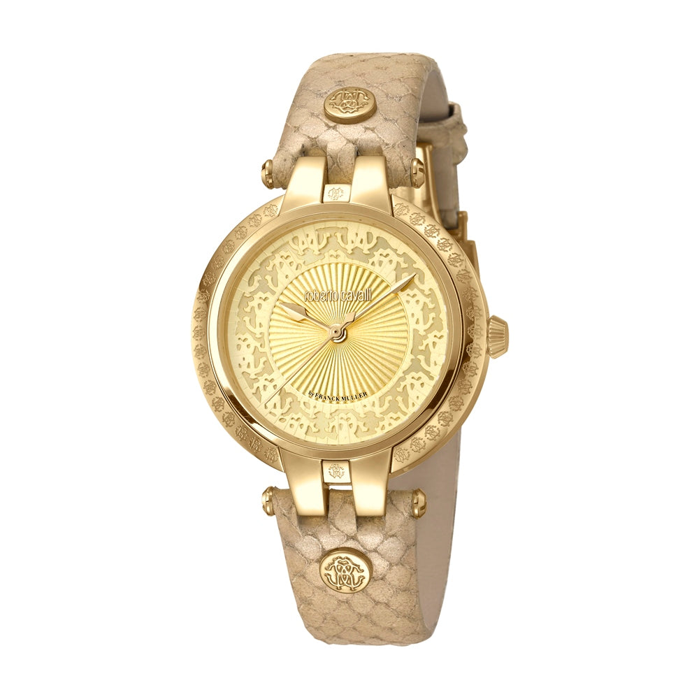 Roberto Cavalli Ladies Watch Light Brown Leather Strap With Golden Color Dial & Case