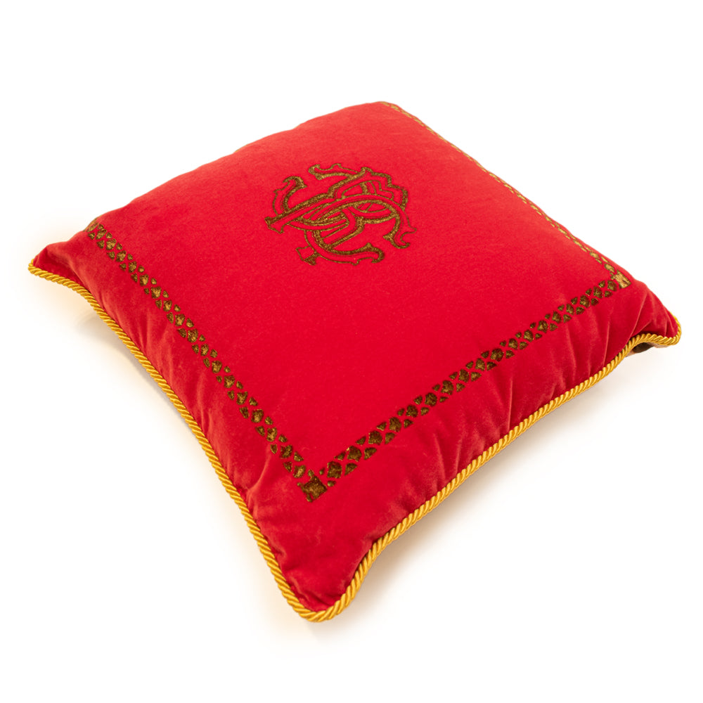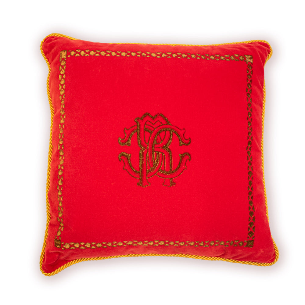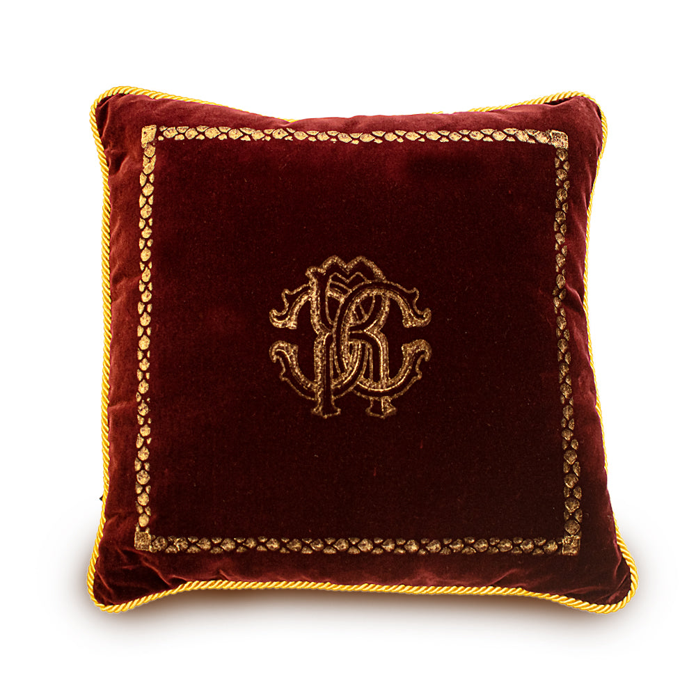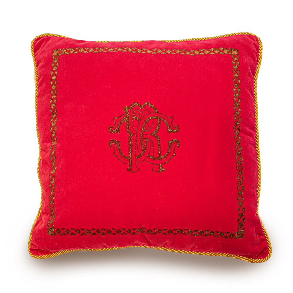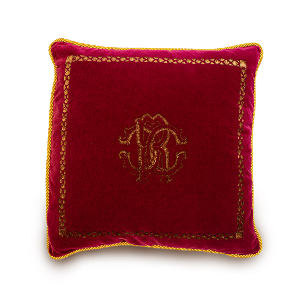 A stylish accent for any room, this cushion is made in Italy and has a signature RC logo with matching rope border and trims.this cushion will bring a touch of Roberto Cavalli's signature aesthetic to your home.