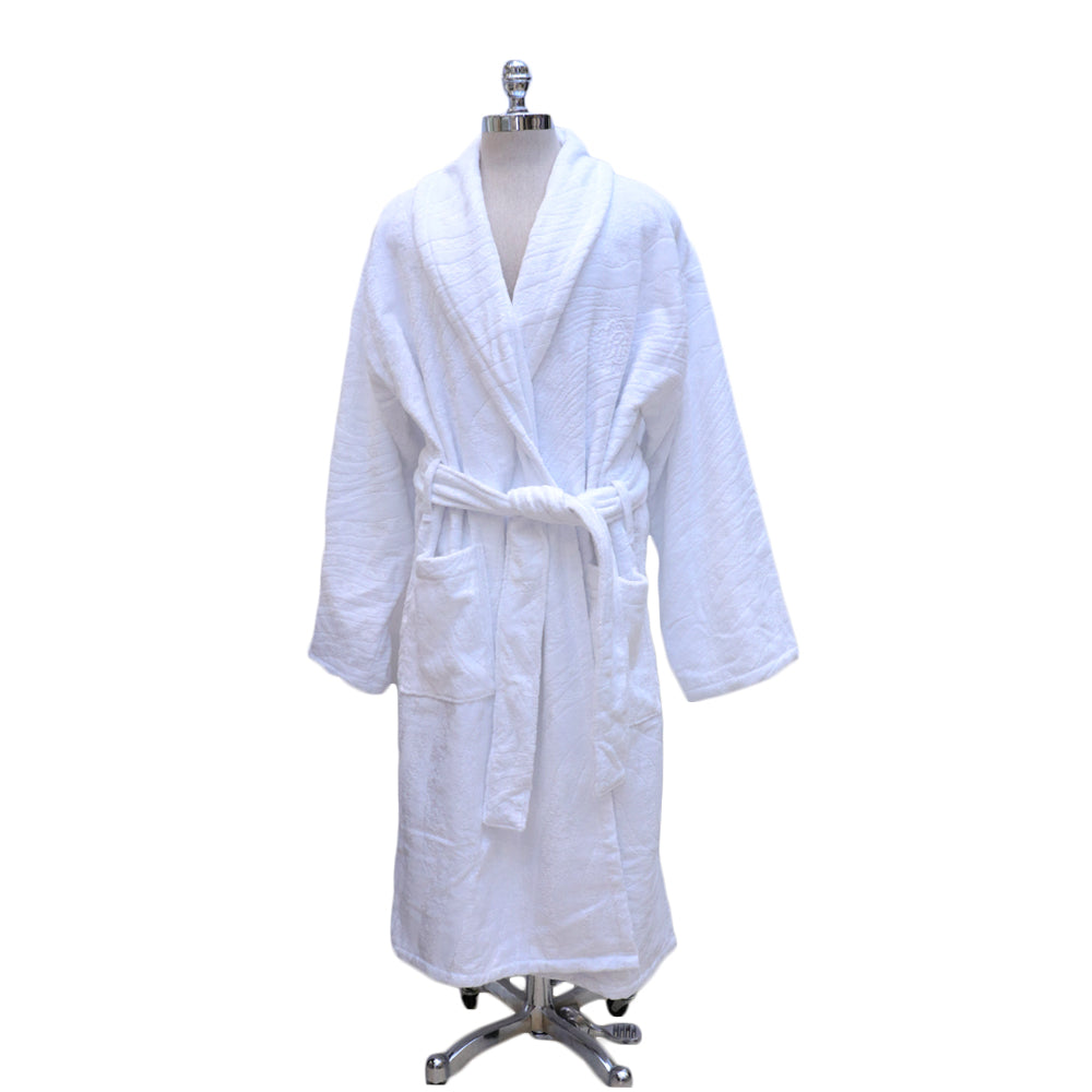 Enjoy a cosy evening in with the elegant Shawl bathrobe from Roberto Cavalli. Simple yet stylish in design, this crisp white bathrobe features the RC logo on the front pocket and is complete with a tie waist. This sumptuously soft bathrobe can be paired with the matching towels from Roberto Cavalli for a coordinated look in your bathroom.