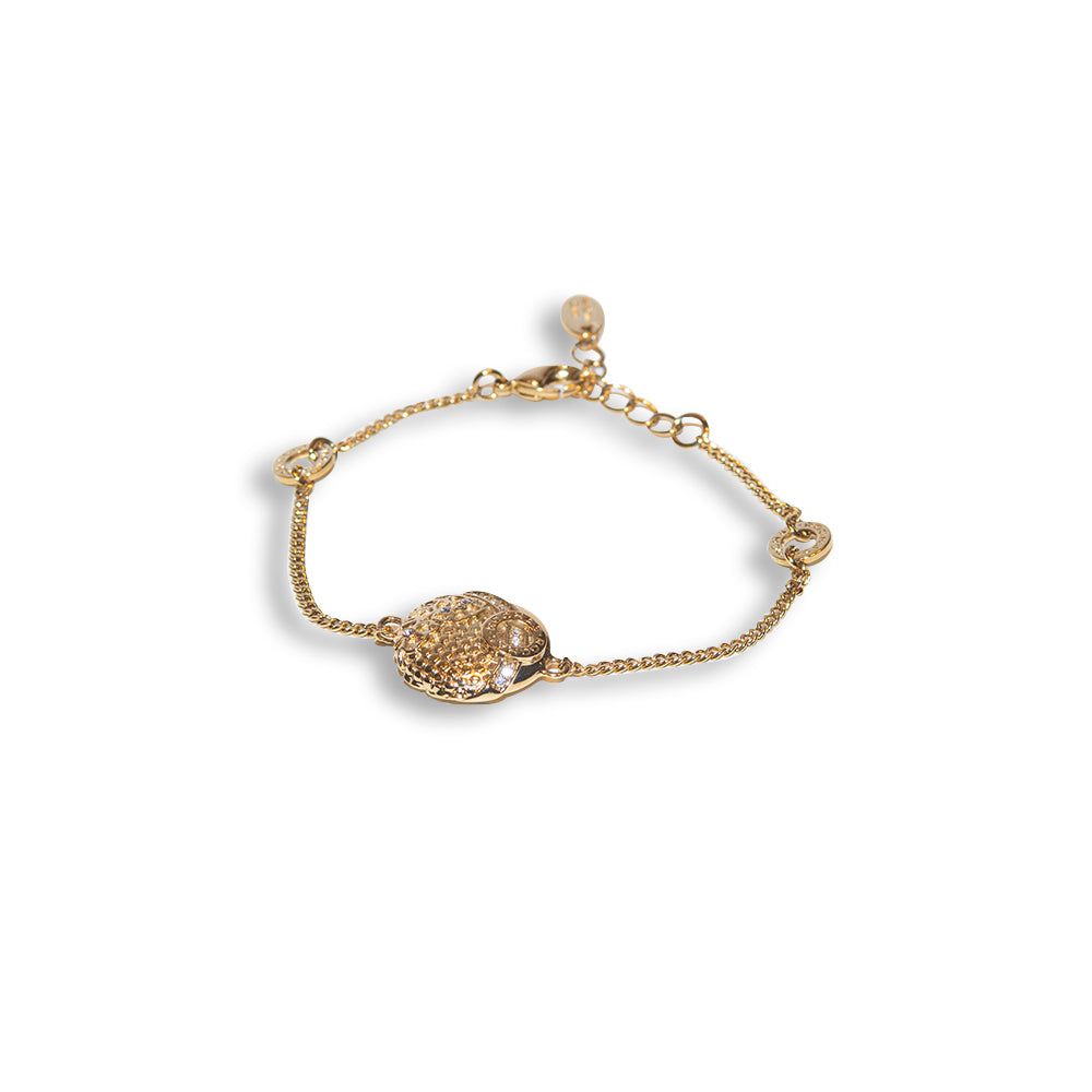 Rochas Ladies Bracelet Ip Gold Round Logo With Stones