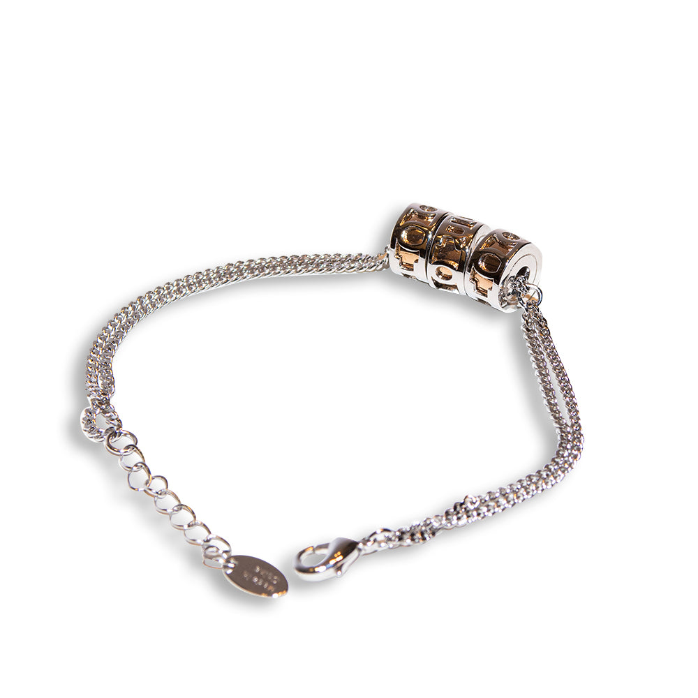 Rochas Ladies Bracelet Silver Color /Ip Gold Double Chain Round Design
