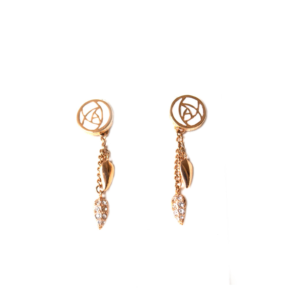 Rochas Ladies Fashion Accessories earrings rosegold plated leaf drop with stone and circle design