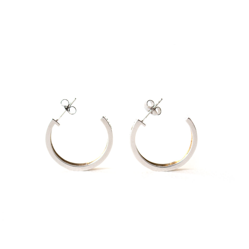 • Rochas Earrings Silver / Gold Plated With Circle Design And Logo