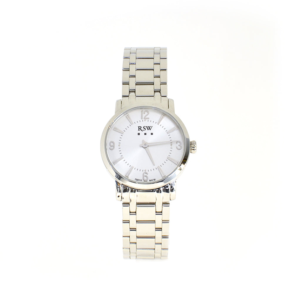 Rsw Ladies Stainless Steel Quartz Watch With Metal Bracelet & White Dial